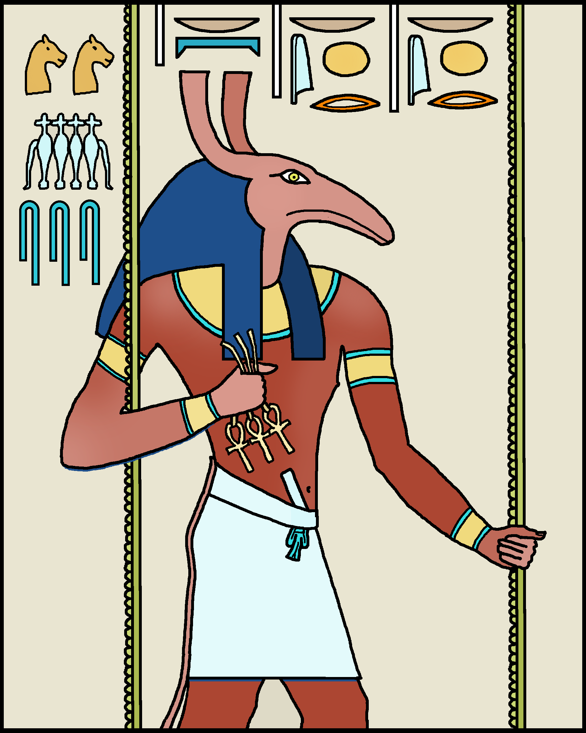 The hieroglyphs to our left is Set's name, smaller hieroglyphs say "Lord of Heaven"