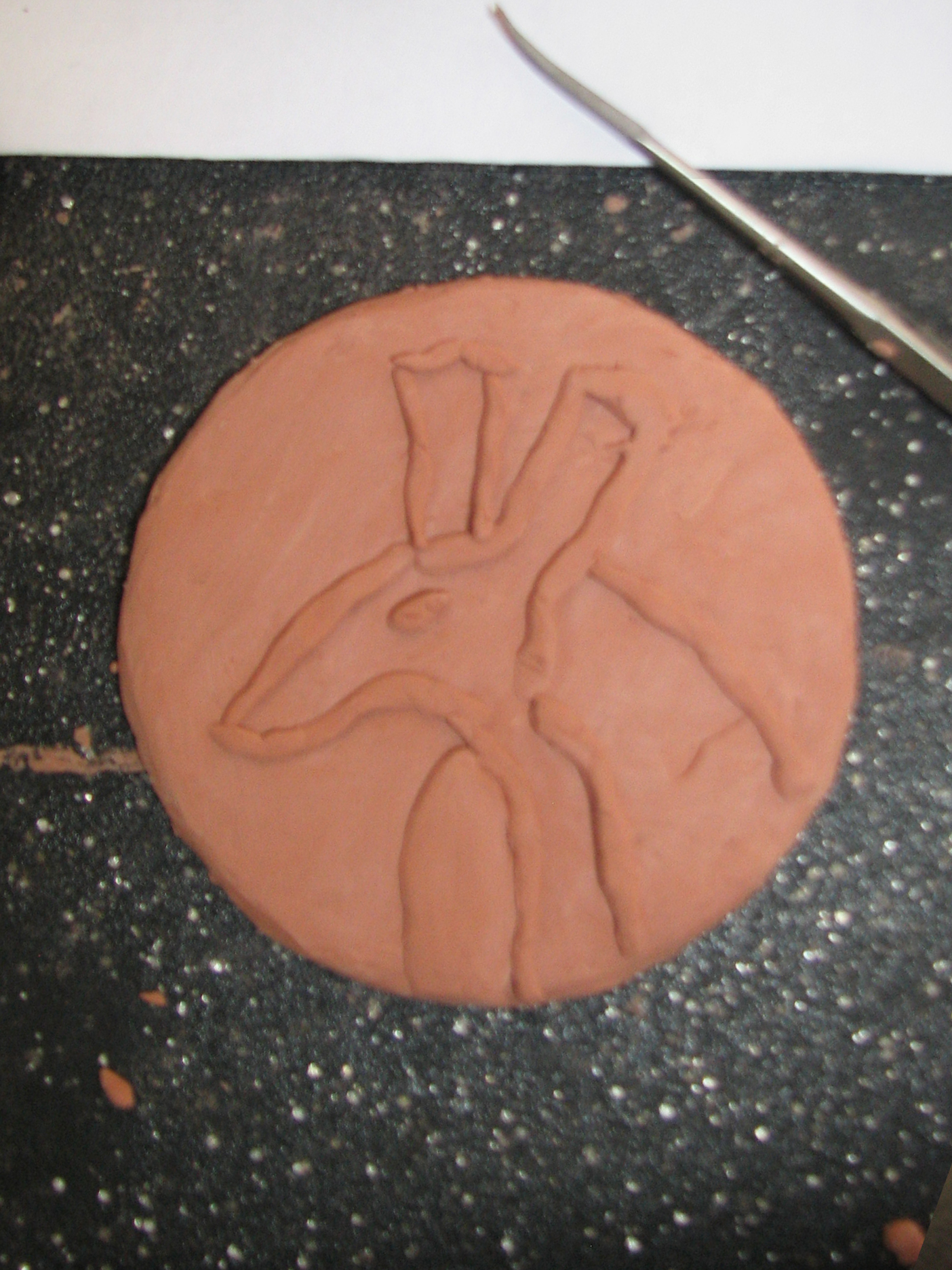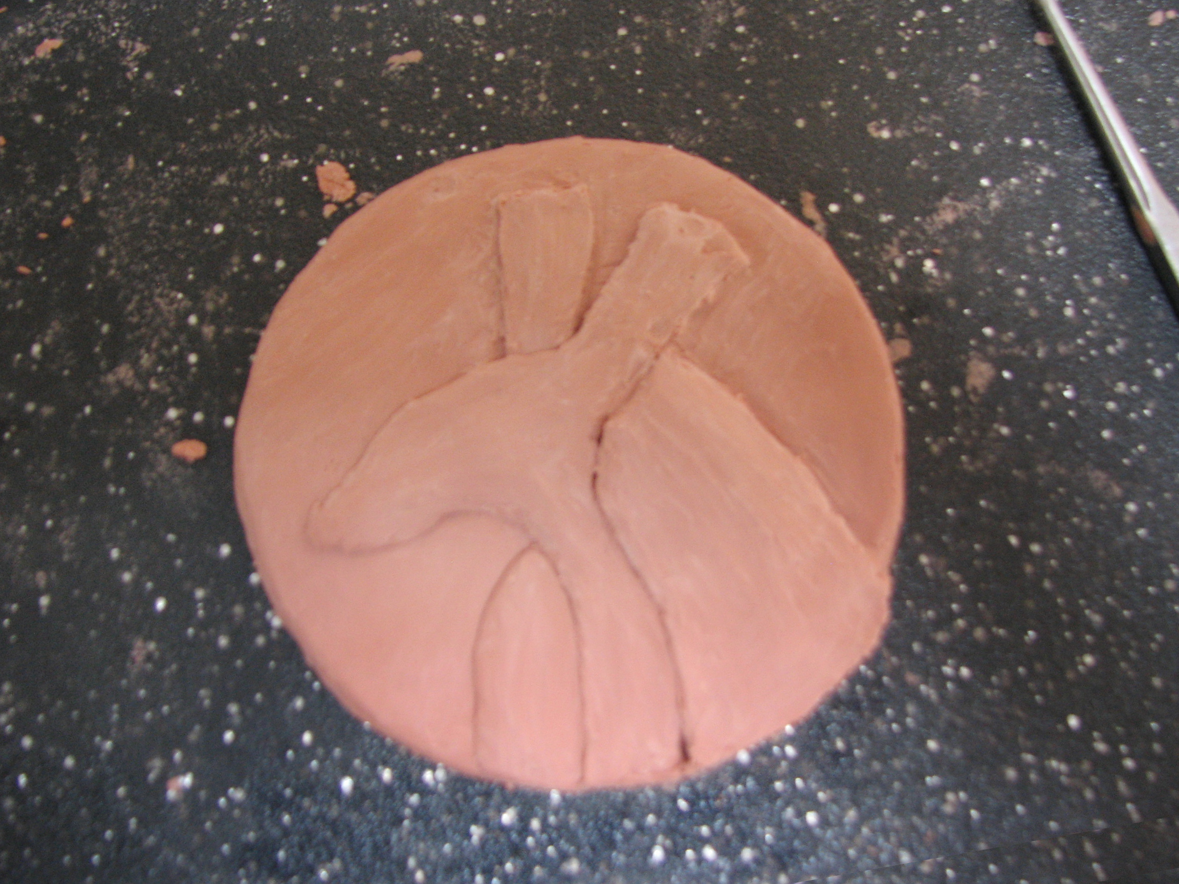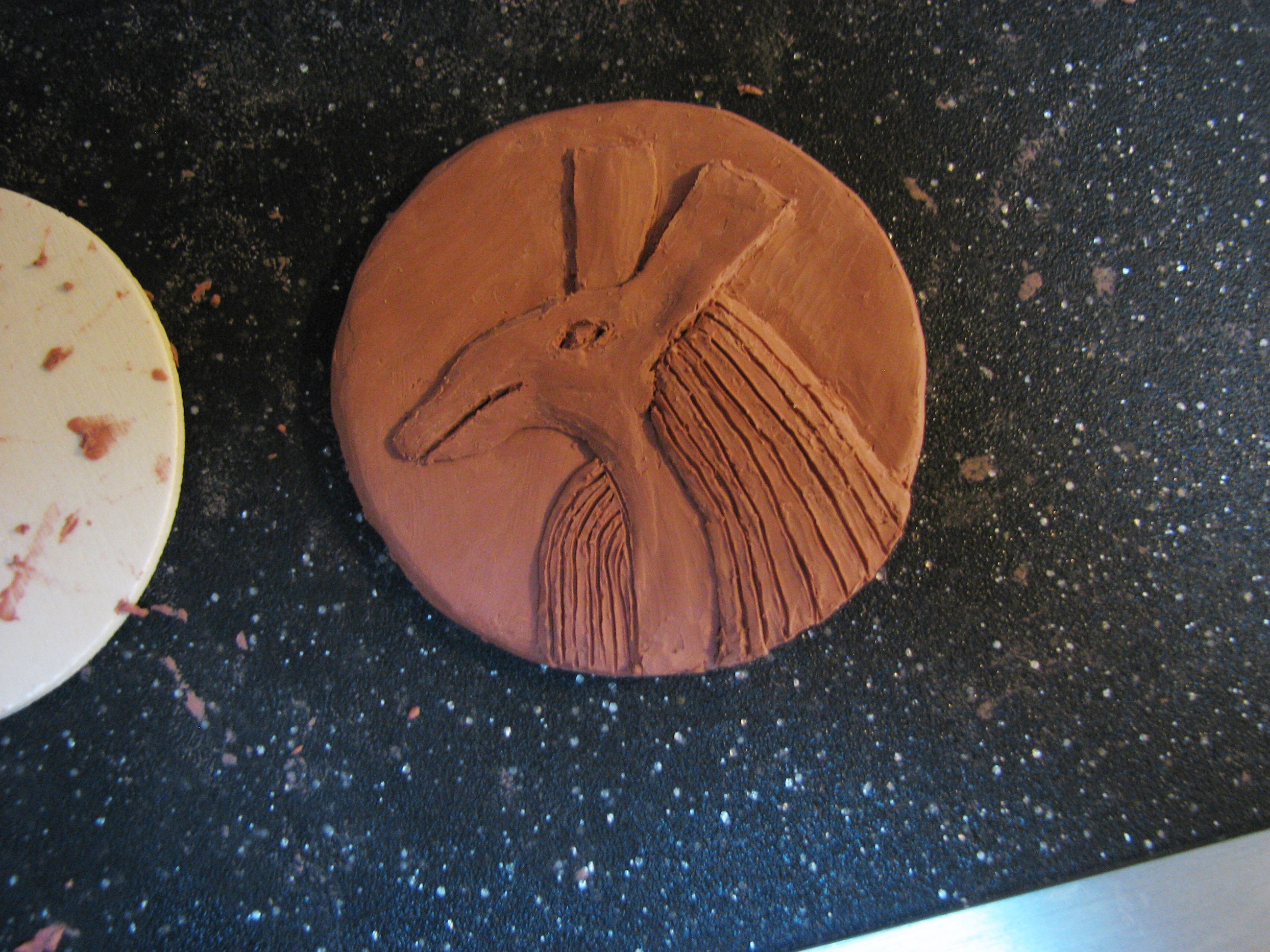 I wanted to make a medal for Set, too. However, the cost of having dies made is very expensive. So I opted for a less expensive method. I know from watching some videos online, the process for a medal or medallion is an additive one. I sent for three inch round wooden discs, one to serve as the base upon which the clay was put. I started with coating the disk in clay: