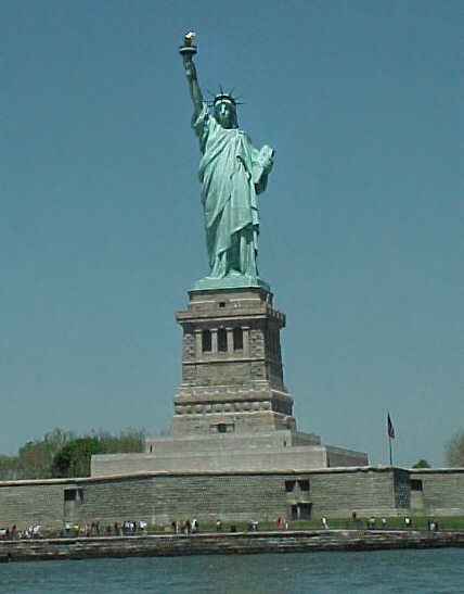 I mostly went by a photo by Seth Wenig/AP, but I consulted a variety of other photos. "Gadjet" Andrew's close up of Anubis' face was particularily helpful, as was also "Californian Em's" good view of Lady Liberty. I wanted to have a more sunny scene, rather than the gray day it had been
