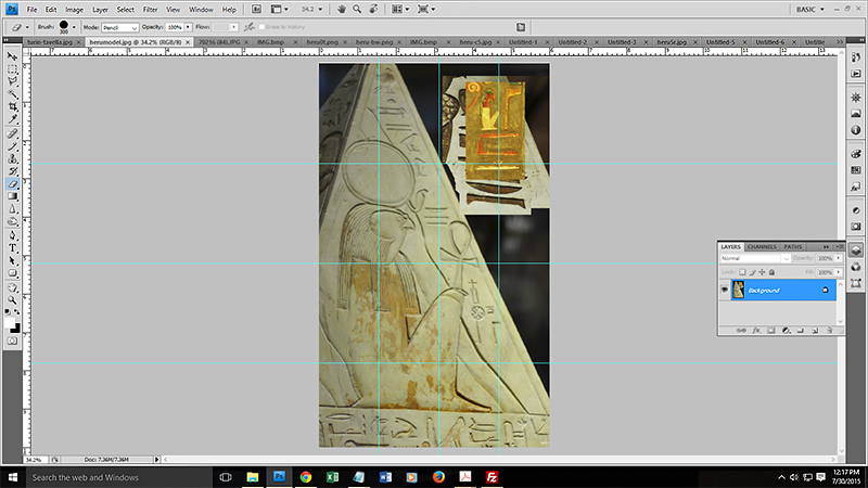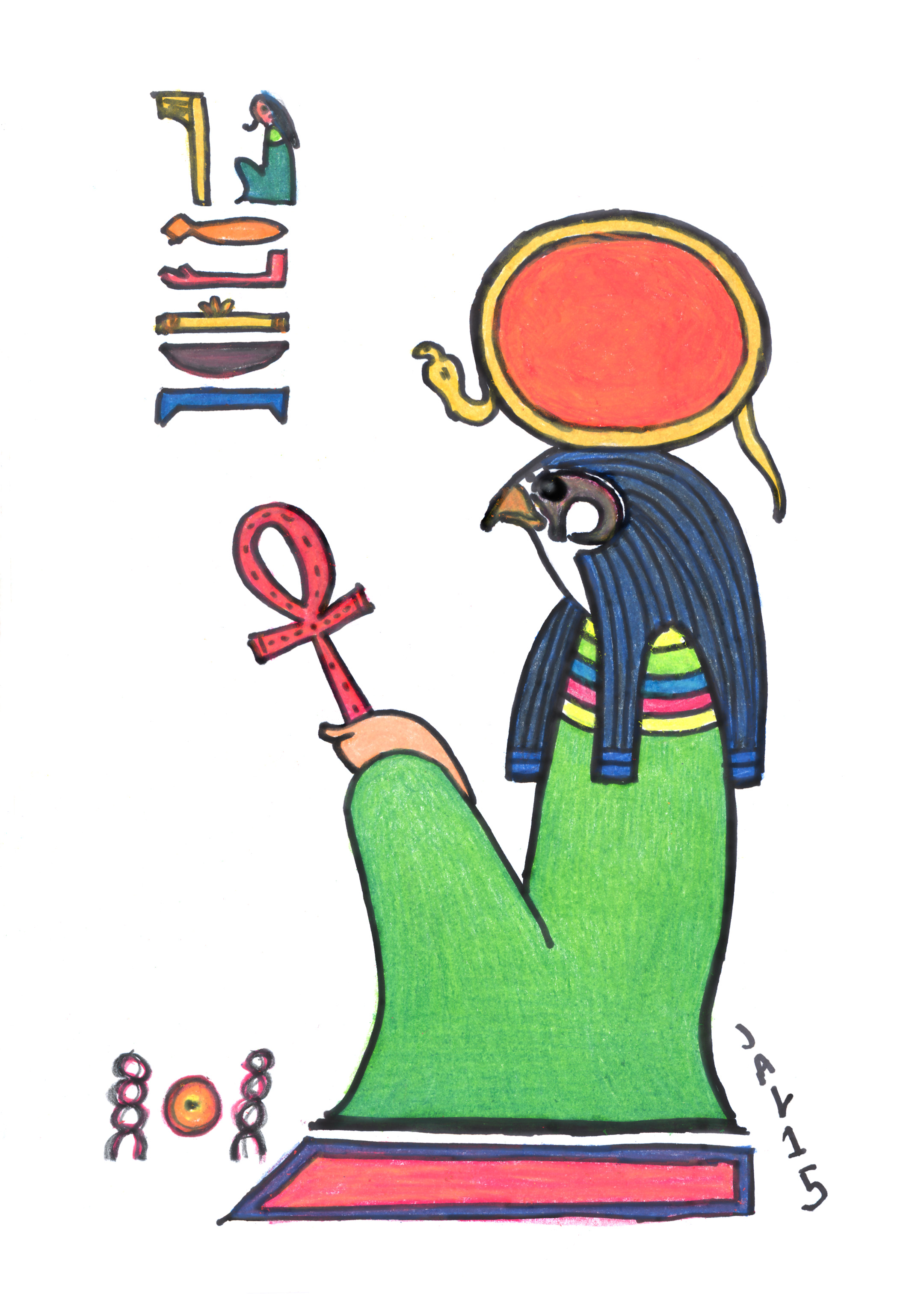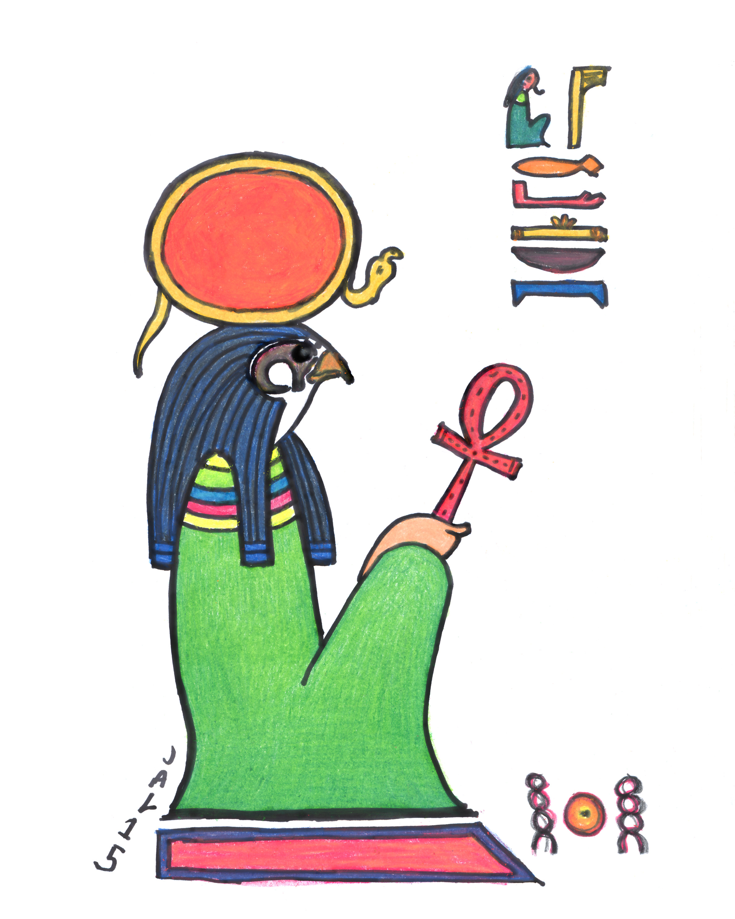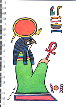 I had quite a bit of space below Heru-Wer, so I put a ma'at plinth underneath him, to give him something meaningful to sit upon. My sketch model was a pyramid shaped statue at the Turin museum. I took the titles from another side of this piece, meaning "Great God, Lord of heaven". Horemheb's tomb also has a Heru with these titles, but I think that one is Heru-sa-Aset, (Horus, son of Isis)