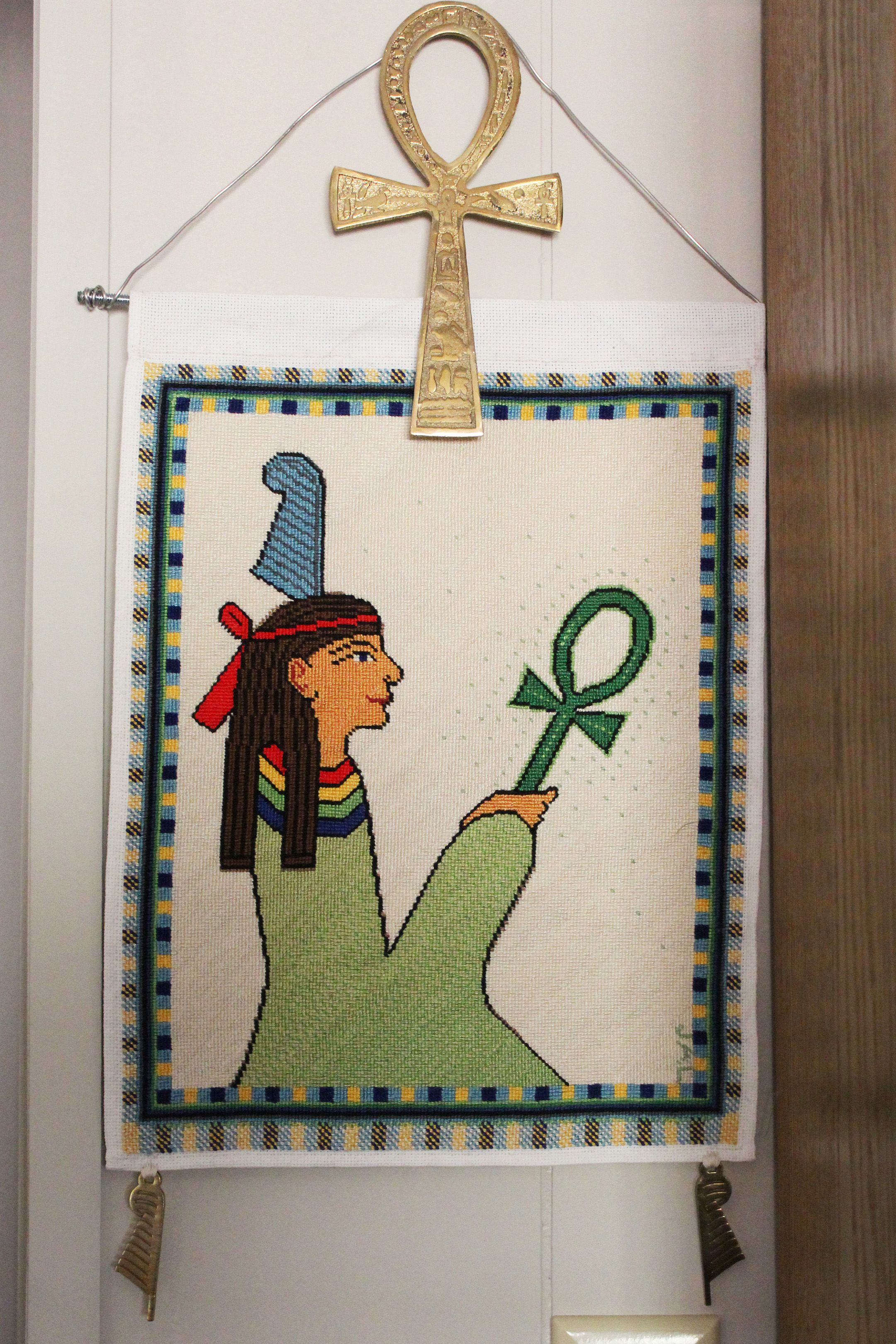 Hanging up, with two feathers of Ma'at I designed and made via Shapeways...