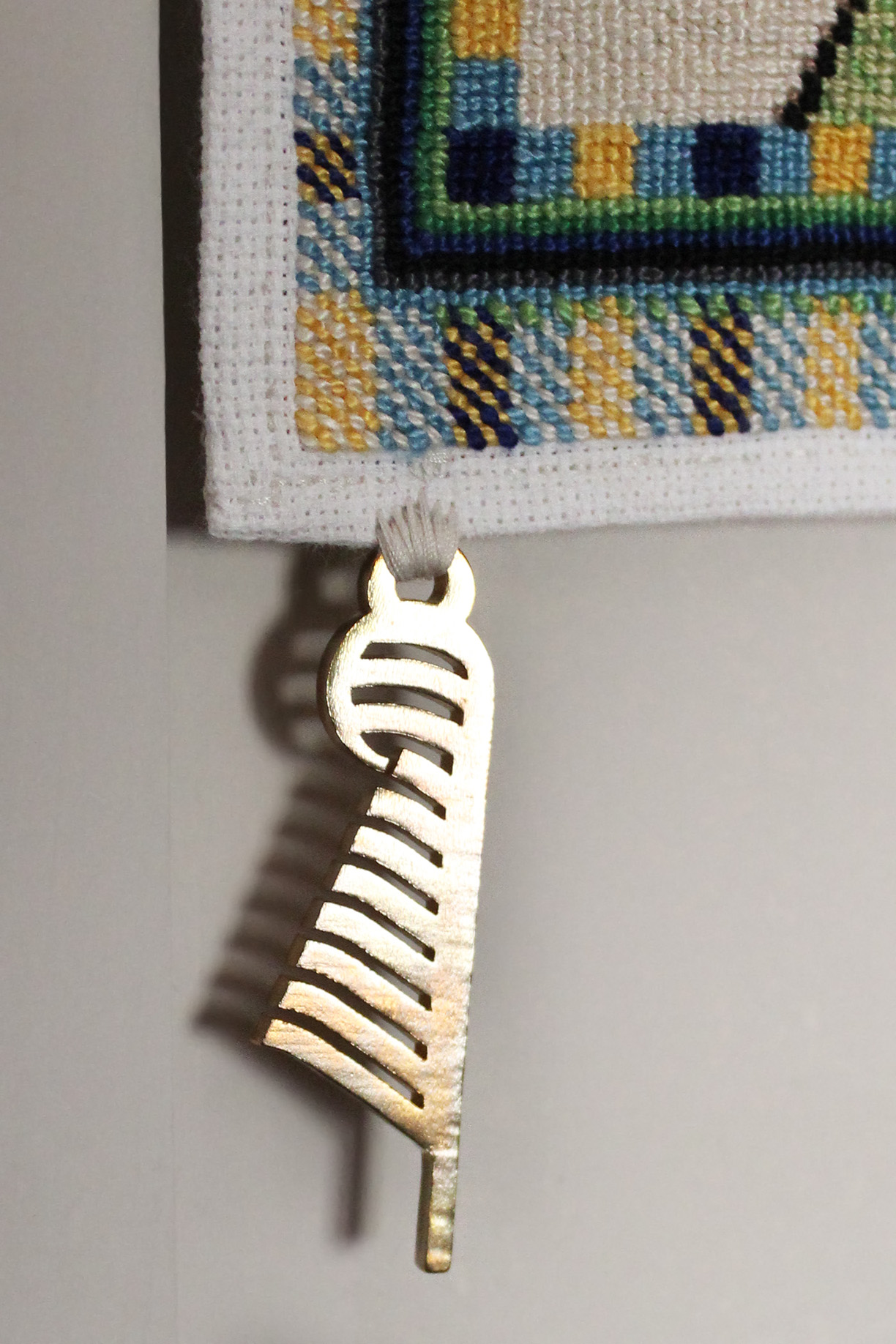 I used a print of the linear version of the piece below as my guide when plotting the needlepoint grid: