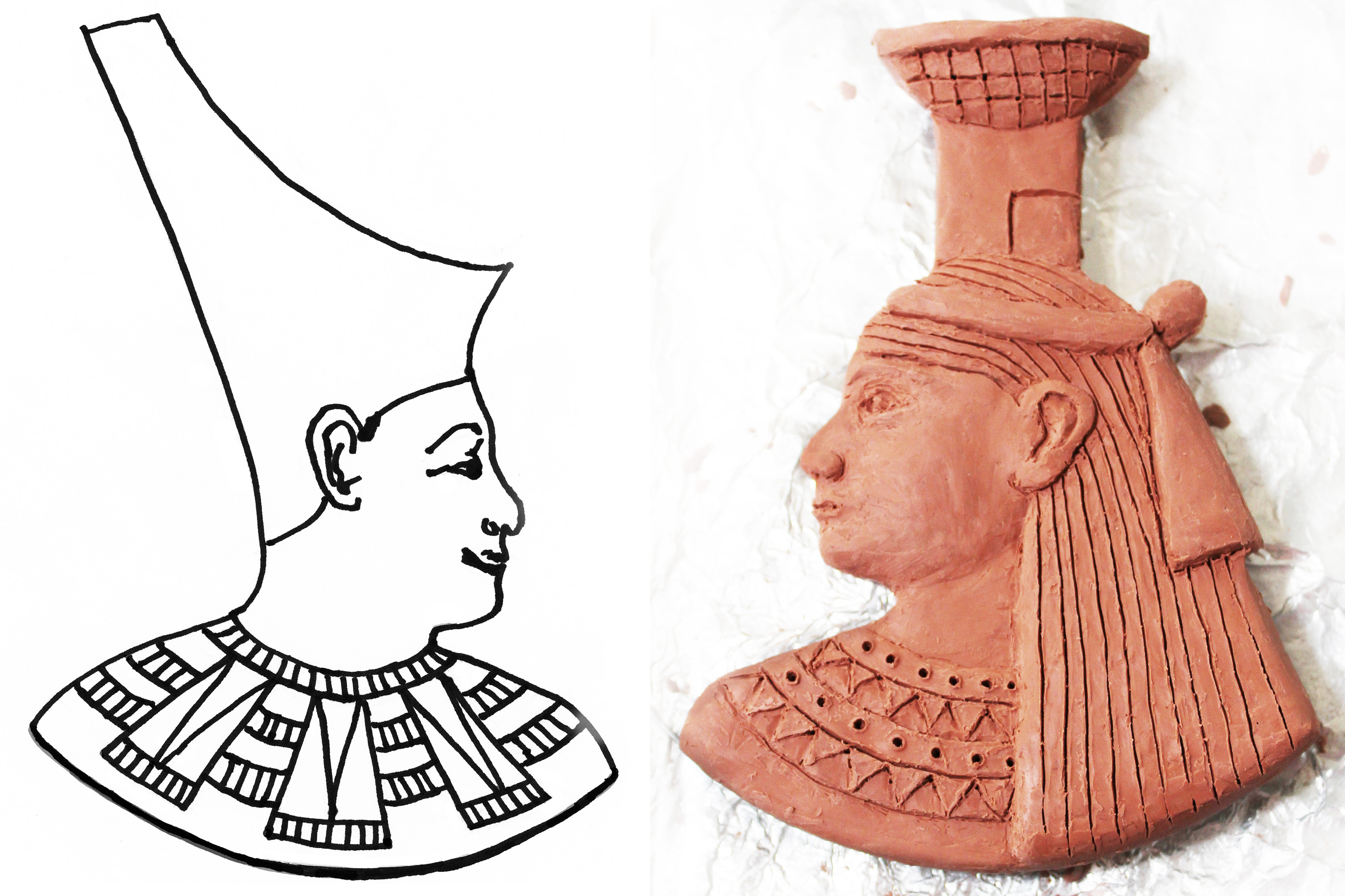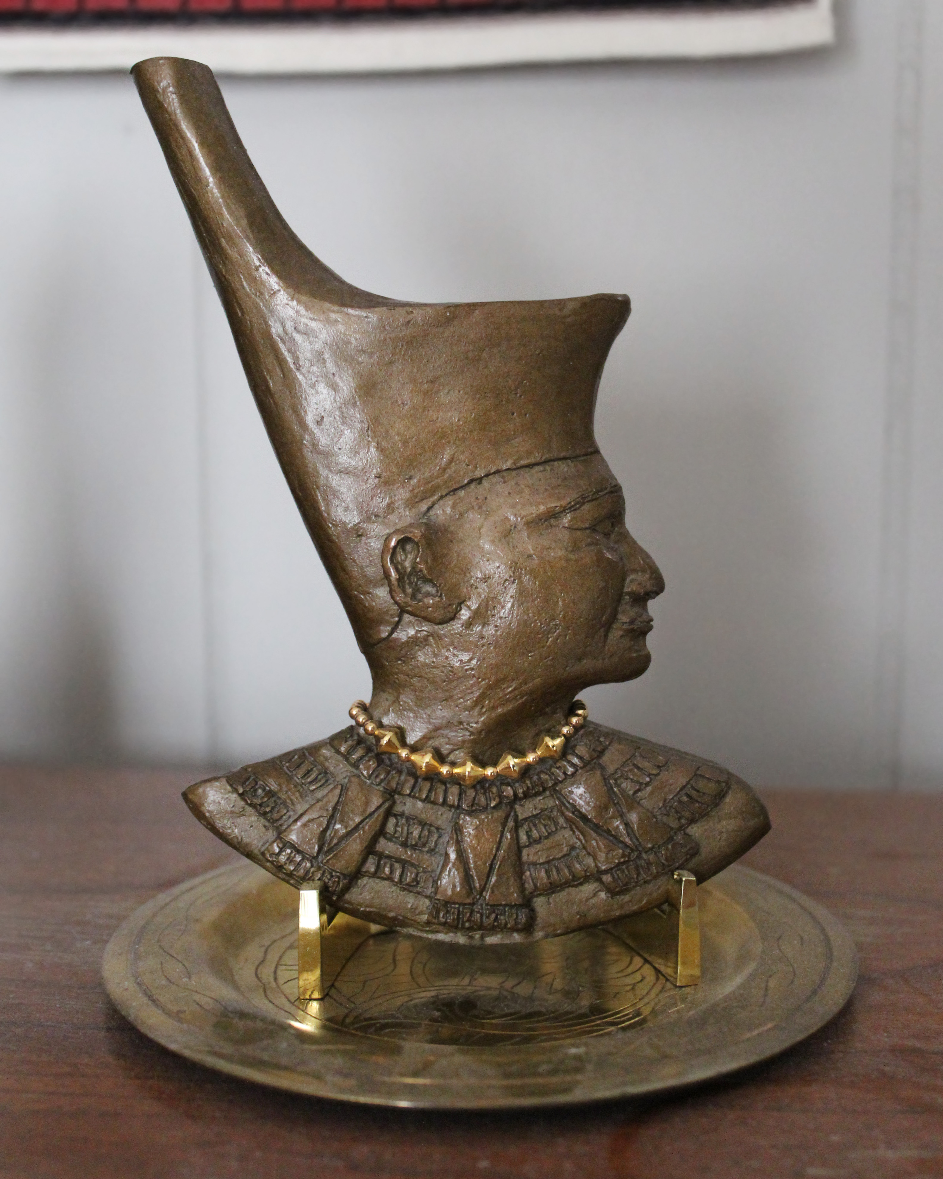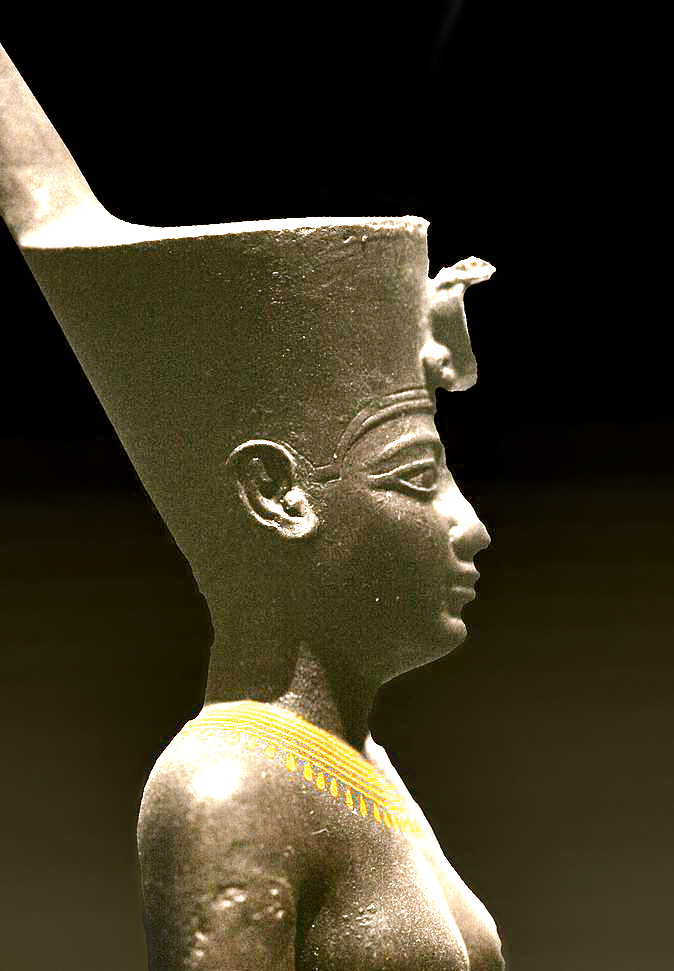 nervous to attempt a more 'human' face. But the rarity made the effort worth the attempt, so..... Julia suggested I do a cut-away version, rather than a round one, so that her face and crown could have greater detail. I adapted Wikipedia's Nebthet (Nephthys) profile so that it had better proportions. Then I had Shapeways make the base, 130.6 mm tall, 95mm wide and 4mm thick.