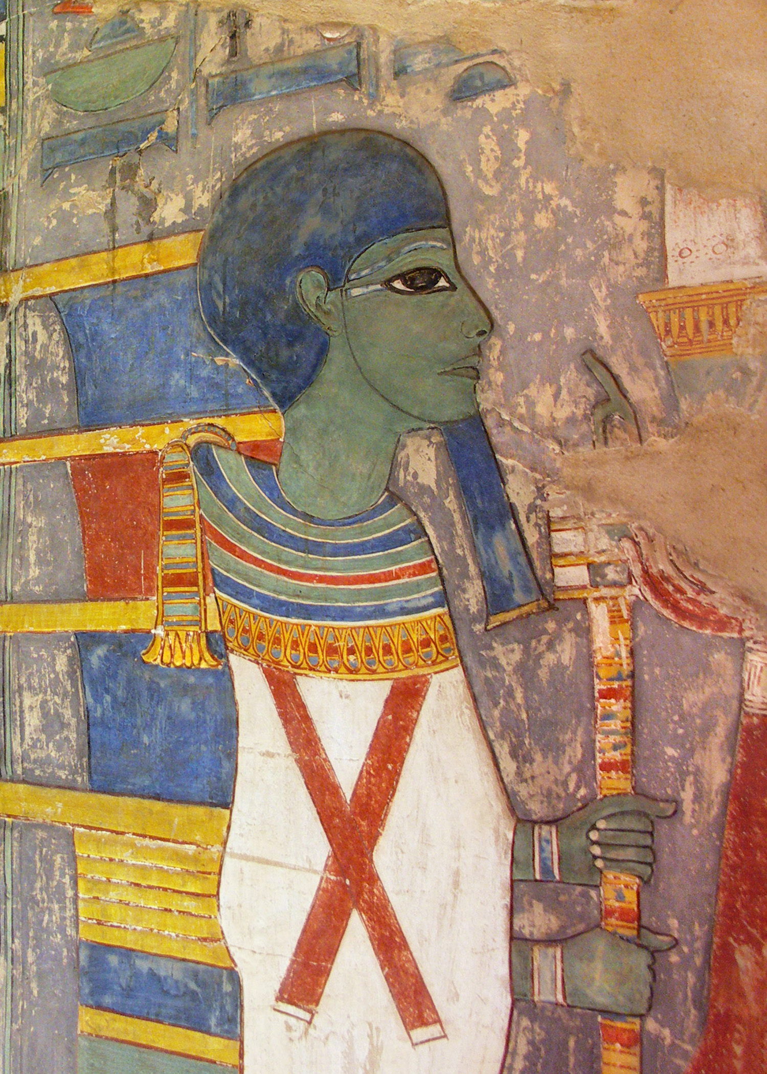 While the colors of the original are influenced by those of the stela of Penbuwy, (British Museum, EA.1466), afterwards I shifted the color hues to create a more peaceful mood: