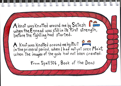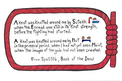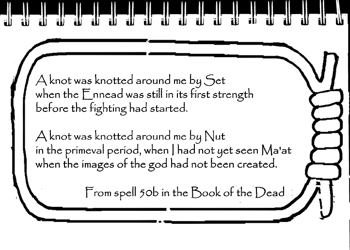 Of course I'd already made a few changes in the transcription of the quote because Set (aka Setesh or Sutekh) had been referred to in the Greek mode "Seth". The sound of that name seems greatly weakened to me, as if those who used that name in Greco-Roman times wished to weaken the deity's potency. "Set" may also be a shortened name, albeit more true to the ancient Egyptian (as far as we know). As I hand wrote the quote, I felt the need of Set's full name. I started off with 'Set', so I'd made it 'Setesh'. But as I worked with the digital version, I kept hearing 'Sutekh', so by the wonder that is Photoshop, voila, my image can appear as if that's the way it had been hand-scribed. In case all our attempts to pronounce the deities names are completely off, I've included the hieroglyphs. For the rope-y cartouche, I used the cartouche around Seti II's name as it appears on a faience tile at the Metropolitan Museum. |
