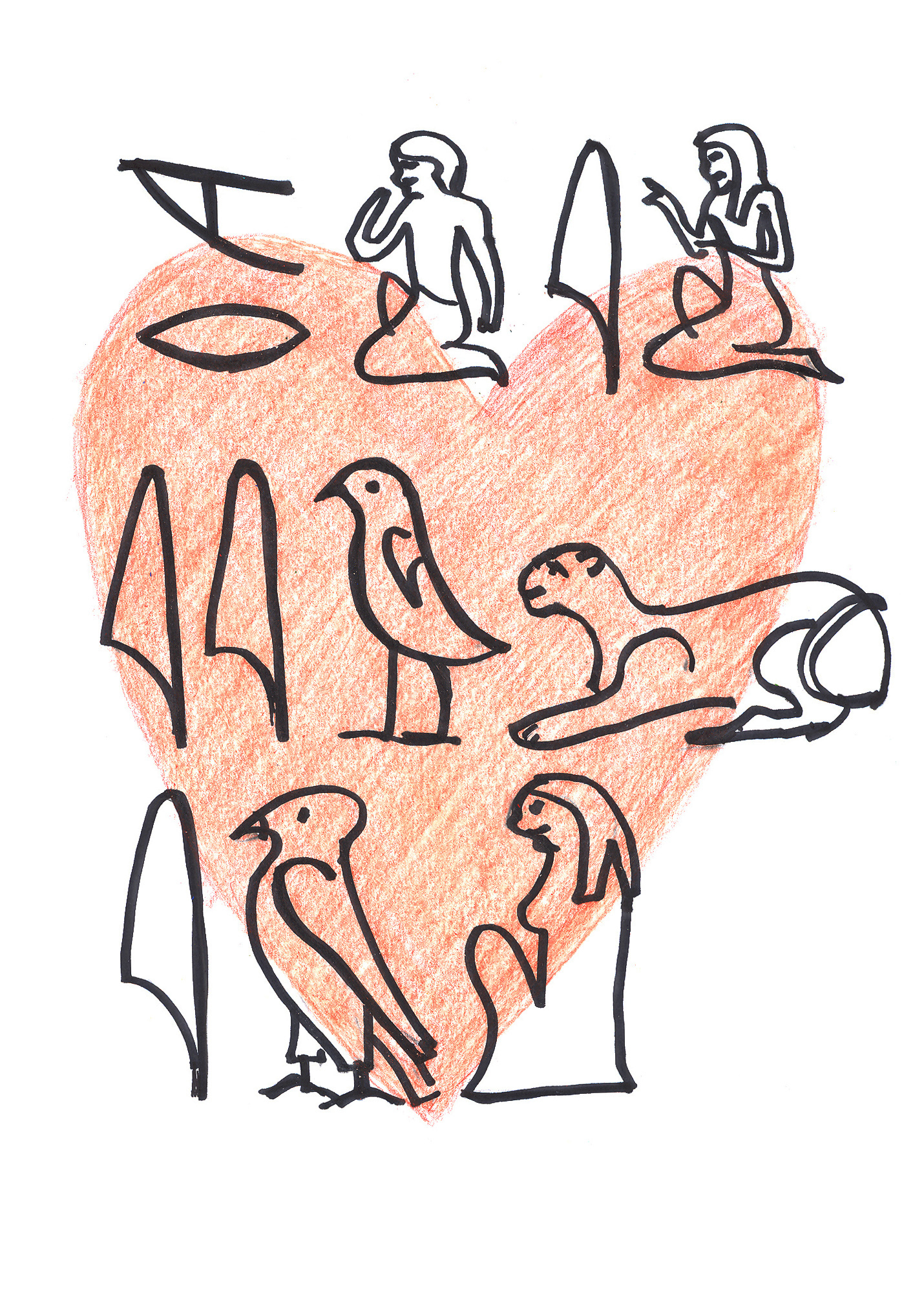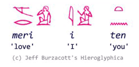 "I love you", as rendered by Jeff Burzacott's Hieroglyphica