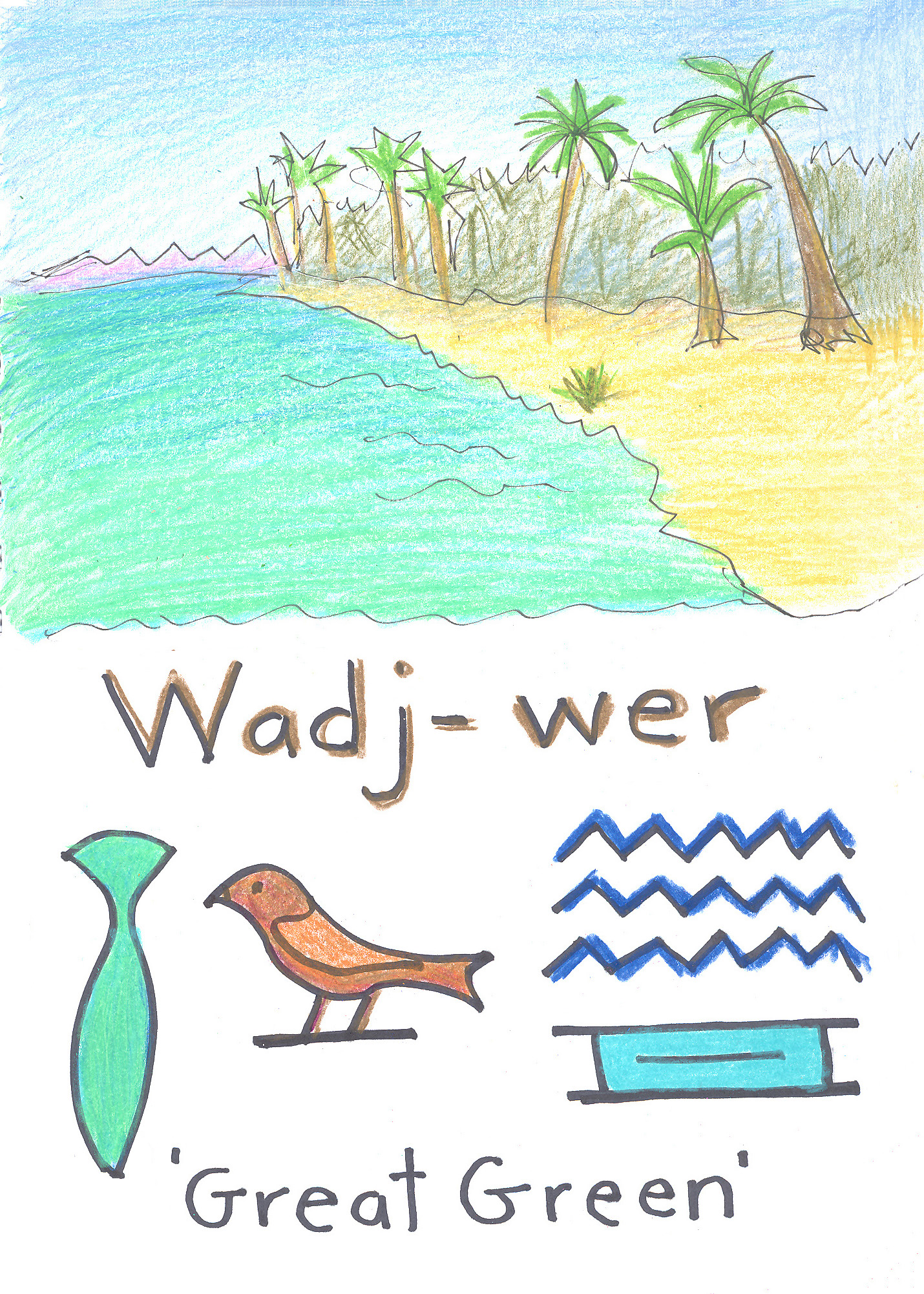Inspired by the Friday Illustration theme of 'ocean', I explored the Egyptian hieroglyphs for 'ocean': the "Wadj-wer', or 'Great Green', more exactly 'green-great body of water'..