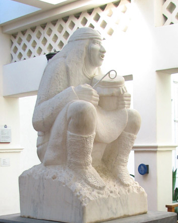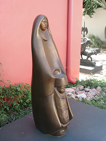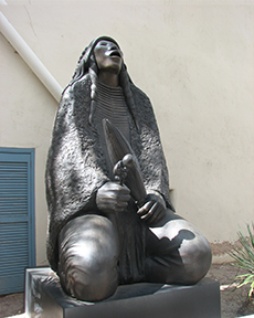 Allan Capron Houser (Haozous at birth) lived from June 30, 1914 to August 22, 1994. and was a Chiricahua Apache sculptor, painter and book illustrator born in Oklahoma. Eventually, he ended up in New Mexico, near to where his people were before the U.S. government forced his ancestors to go to Oklahoma. Houser joined the faculty of a new Native American art school, the Institute of American Indian Arts, in 1962, where he stayed until his retirement in 1975. Retirement allowed him to become very productive artistically, and Houser became "one of the most renowned Native American painters and Modernist sculptors of the 20th century. "Houser's work can be found at the Smithsonian Museum of American Art, the National Museum of the American Indian, the National Portrait Gallery in Washington, D.C., and in numerous major museum collections throughout North America, Europe and Japan." (Source: Wikipedia) "Houser's sons followed in his footsteps. Bob draws, paints and makes prints and jewelry, but primarily is a sculptor. Phillip worked as an actor for a while, then tried his hand in jewelry and flute making. But like his dad and brother, he eventually was drawn to sculpting."(Source:Azcentral.com news story)