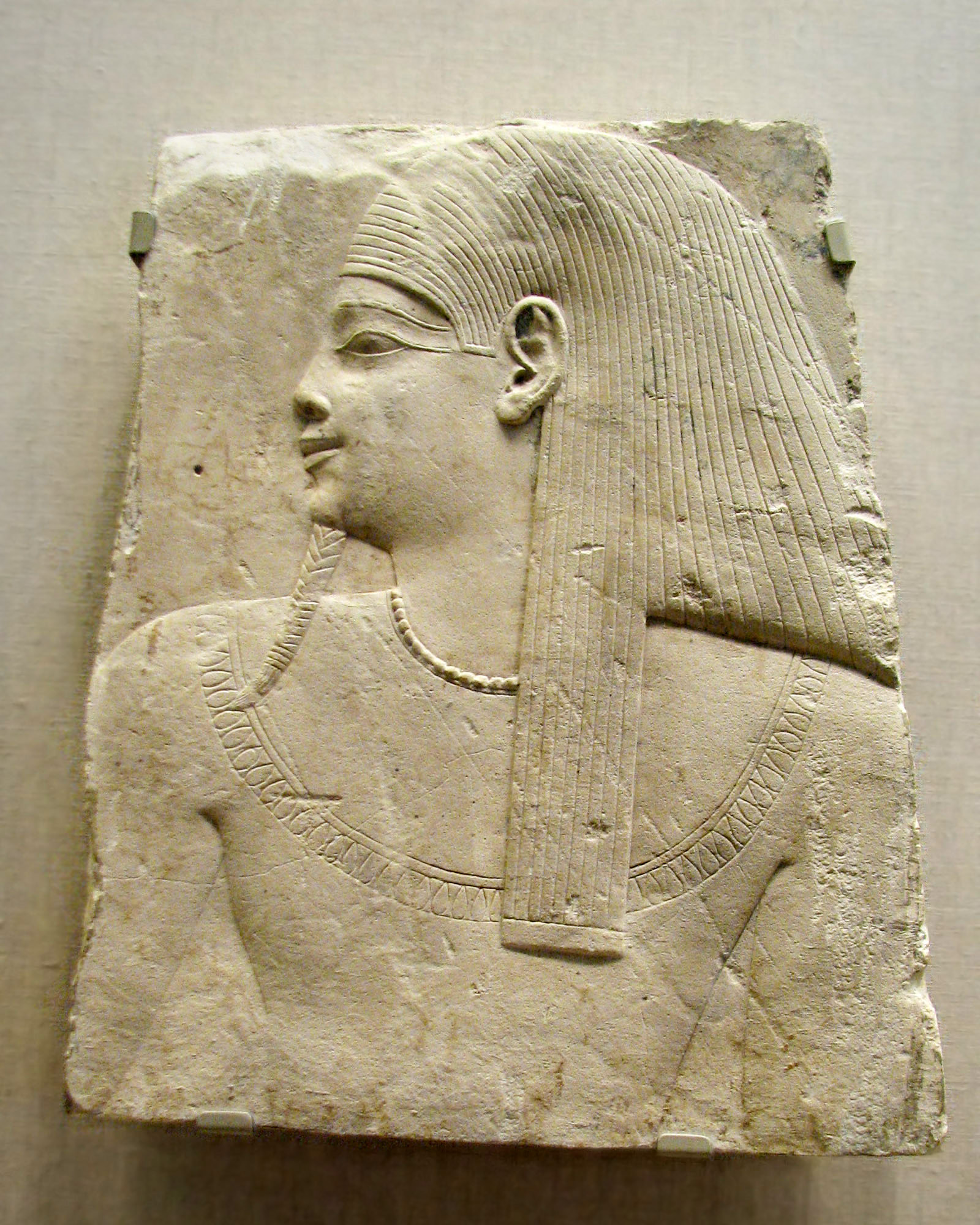(From info card) "These plaques were 'sculptor's models,' used as prototypes by teams of sculptors when carving a tomb's walls. They particularily interested Breasted because, as he said, they were 'permanent model studies on which the artist spent much time.' Some (for example 1920.253 and 1920.256) represent hieroglyphic signs; others (1920.251 and 1920.257) were models for figures that would appear in tomb decoration. In describing them to the Art Institute president, he emphasized their aesthetic qualities, saying that they were 'very beautifully executed, with much refinement and detail.'" |