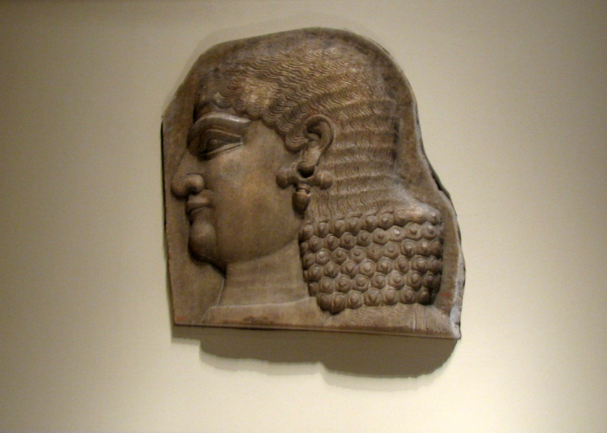 Head of a beardless royal attendant, possibly a eunuch Neo-Assyrian, ca. 721–705 B.C.E. Mesopotamia, Khorsabad (ancient Dur-Sharrukin) Gypsum alabaster, 21 1/2 x 19 in. (54.6 x 48.3 cm)Gift of John D. Rockefeller Jr., 1933, MMA 33.16.2