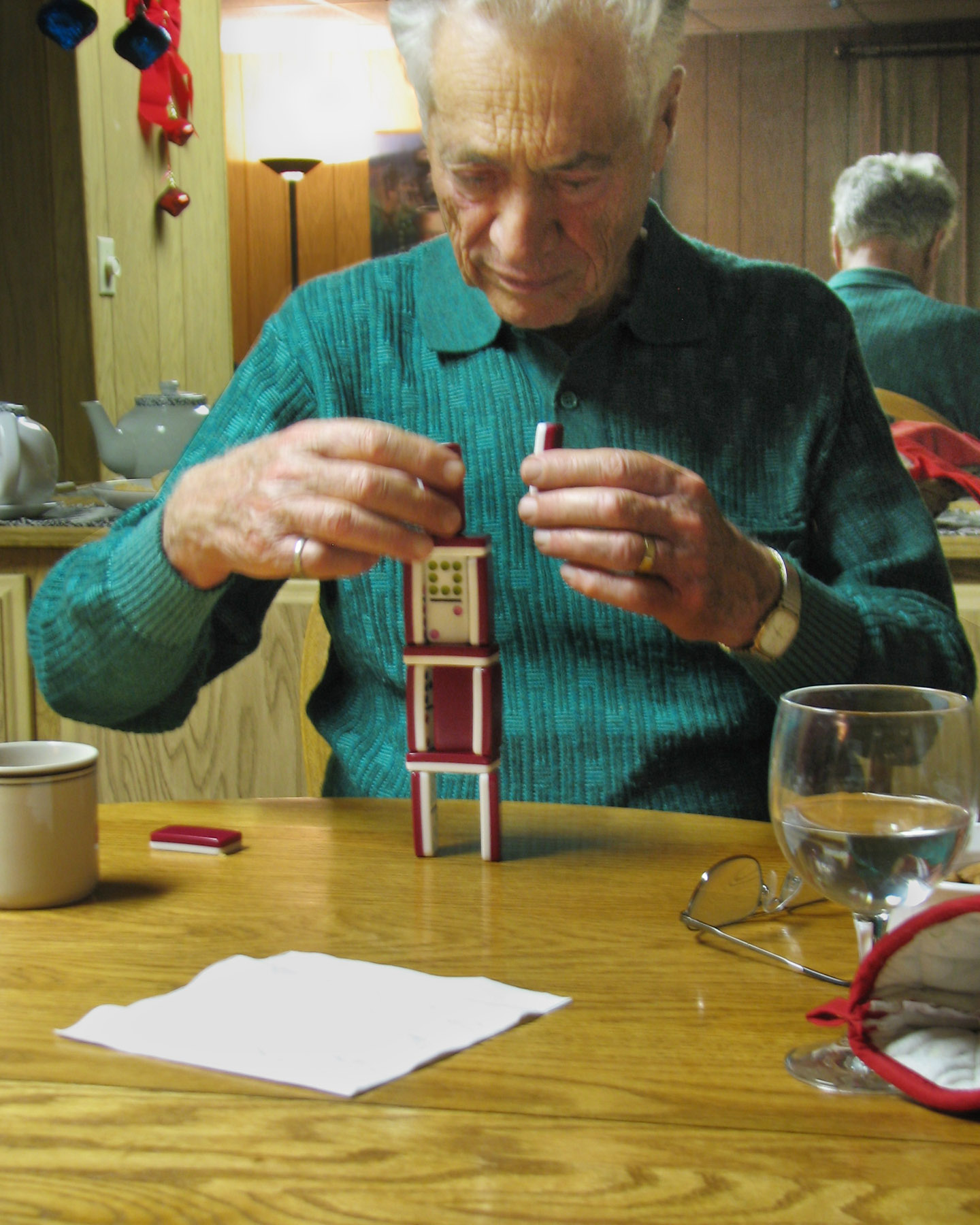 Nick grew playful and invented a new game with the 'Chicken Feet' tiles.