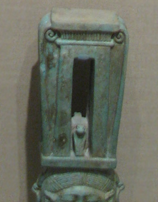 ![]() Faience votive sistrum, faience djed pillar - Late Period MMA 26.7.1039, MMA 45.2.10