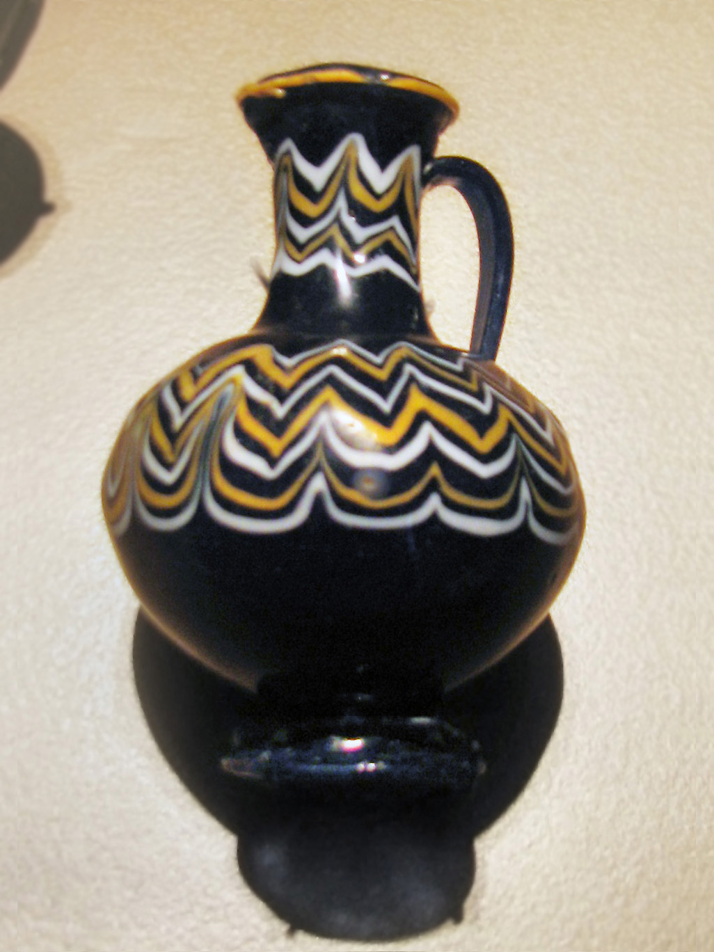 ![]() Polychrome Core-formed Bottle with Festooned Design New Kingdom, late XVIII Dynasty, Reign of Amenhotep III - Akhenaten, ca. 1390-1336 B.C.E. Glass, 3 3/8 x Diam. 2 7/16 in. (8.6 x 6.2 cm) Brooklyn #37.341E, Charles Edwin Wilbour Fund Photo © Joan Ann Lansberry 2012-2016 |