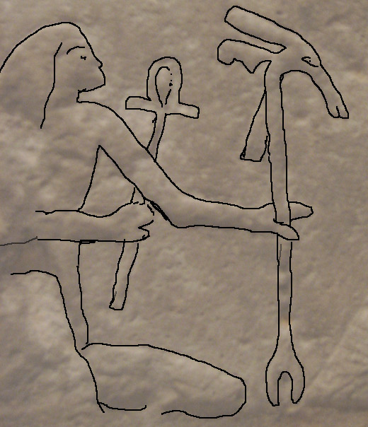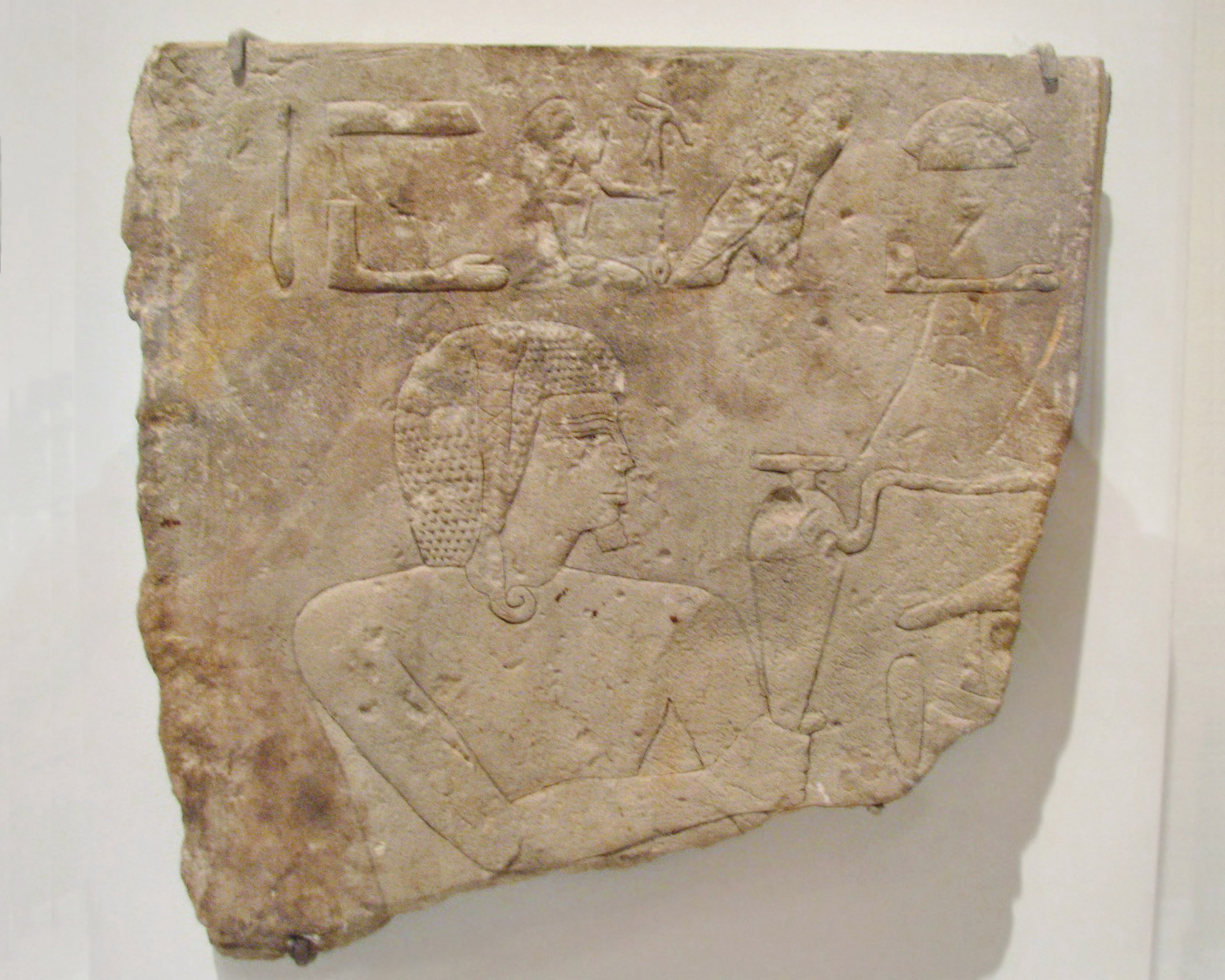 (From the info cards): "He is depicted bearing a libation vessel and sporting the sidelock of a sem-priest, a functionary of Ptah"