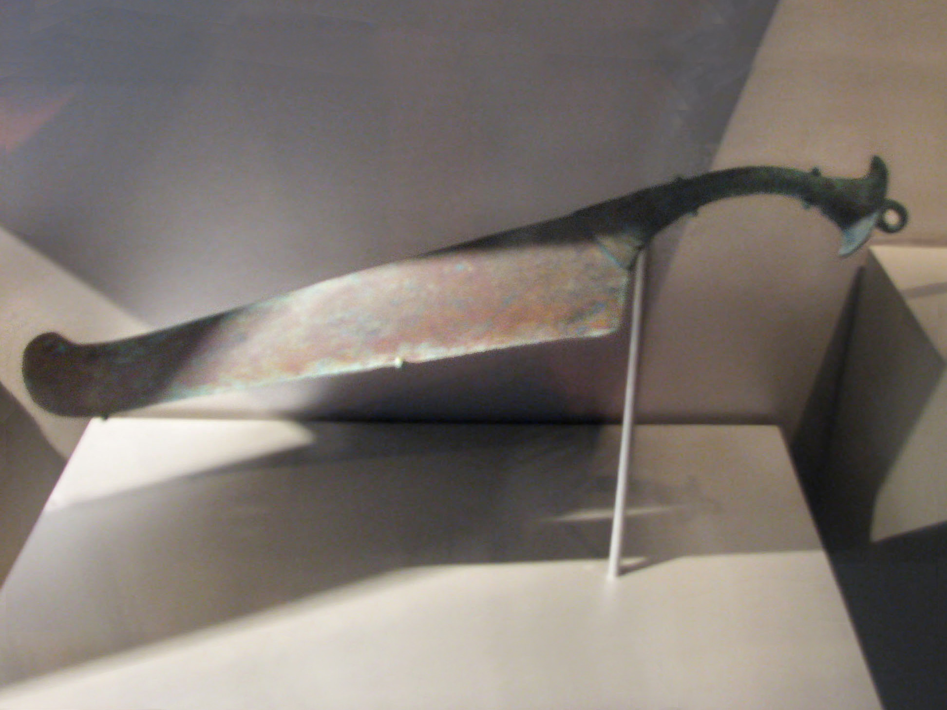 The Ma'at feather is an ostrich plume which represents the concept of Ma'at - "truth, balance and justice". This is likely a ceremonial sword suggesting the 'justice' aspect of Ma'at.