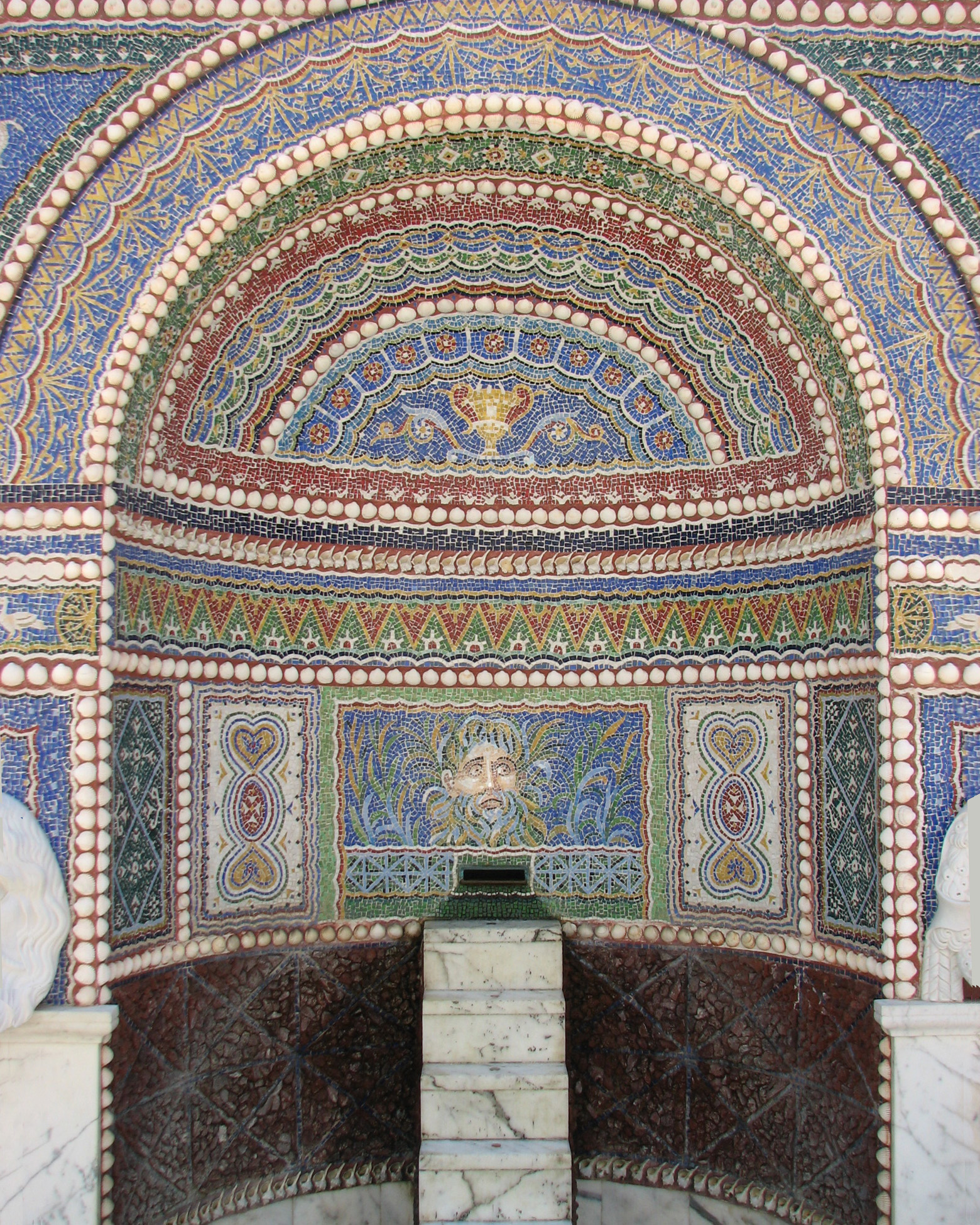The East Garden of the Getty Villa has a recreation of the detailed mosaic fountain in the "House of the Large Fountain" at Pompeii.
