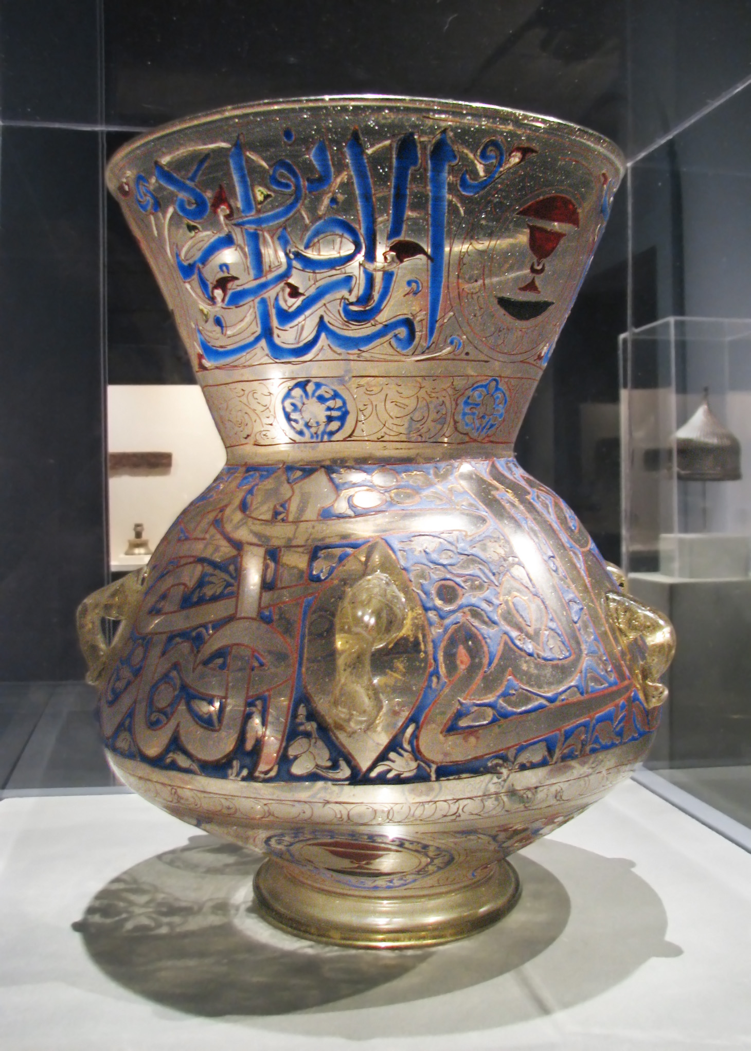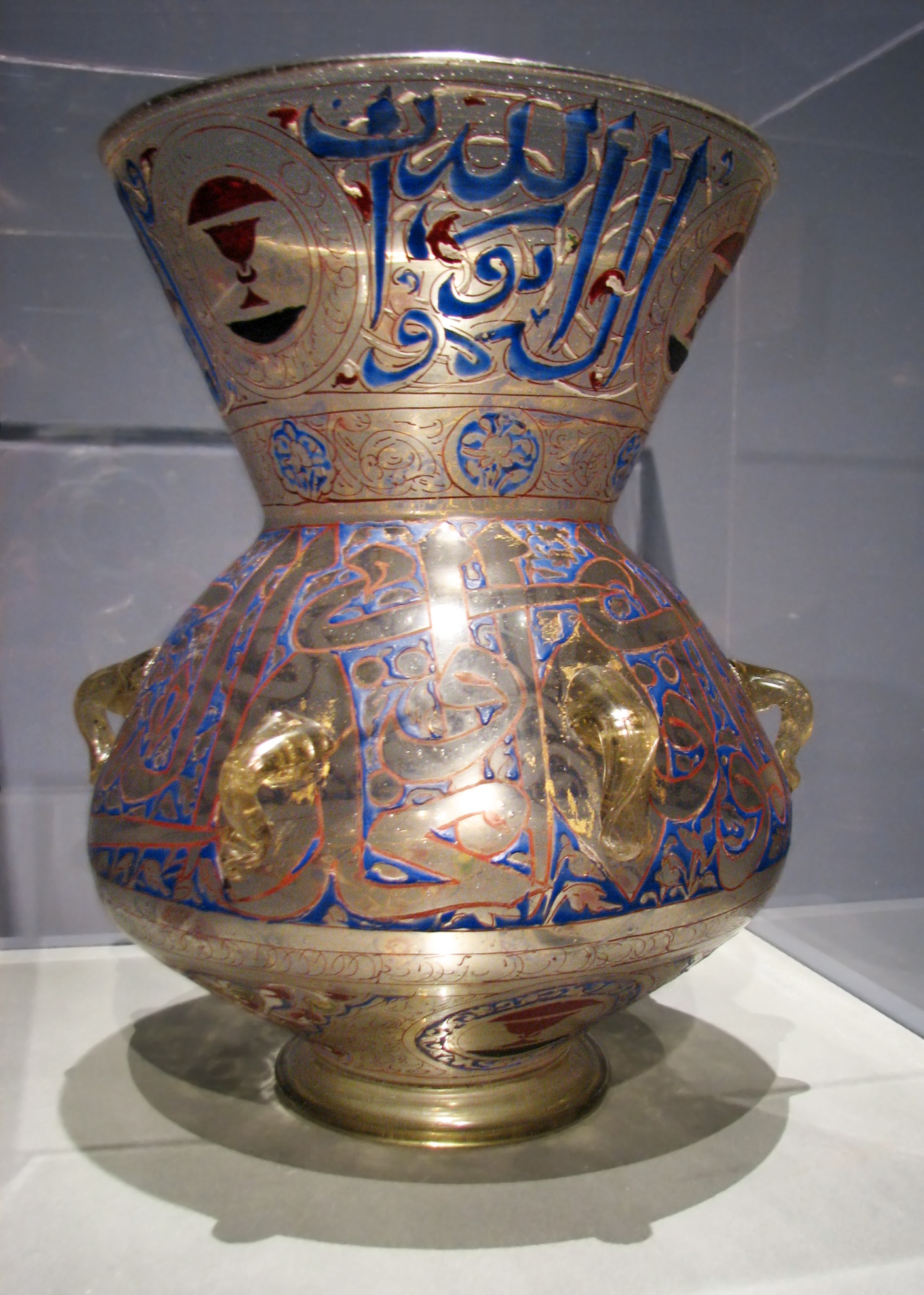 ![]() Exquisitely detailed glass lamp, free-blown and tooled, enameled and gilded Egypt or Syria, mid-14th century Height: 14 7/8 in. (37.78 cm); Diameter: 11 1/2 in. (29.21 cm) William Randolph Hearst Collection, LACMA #50.28.4 Alternate view More examples of amazing glassware from this era |