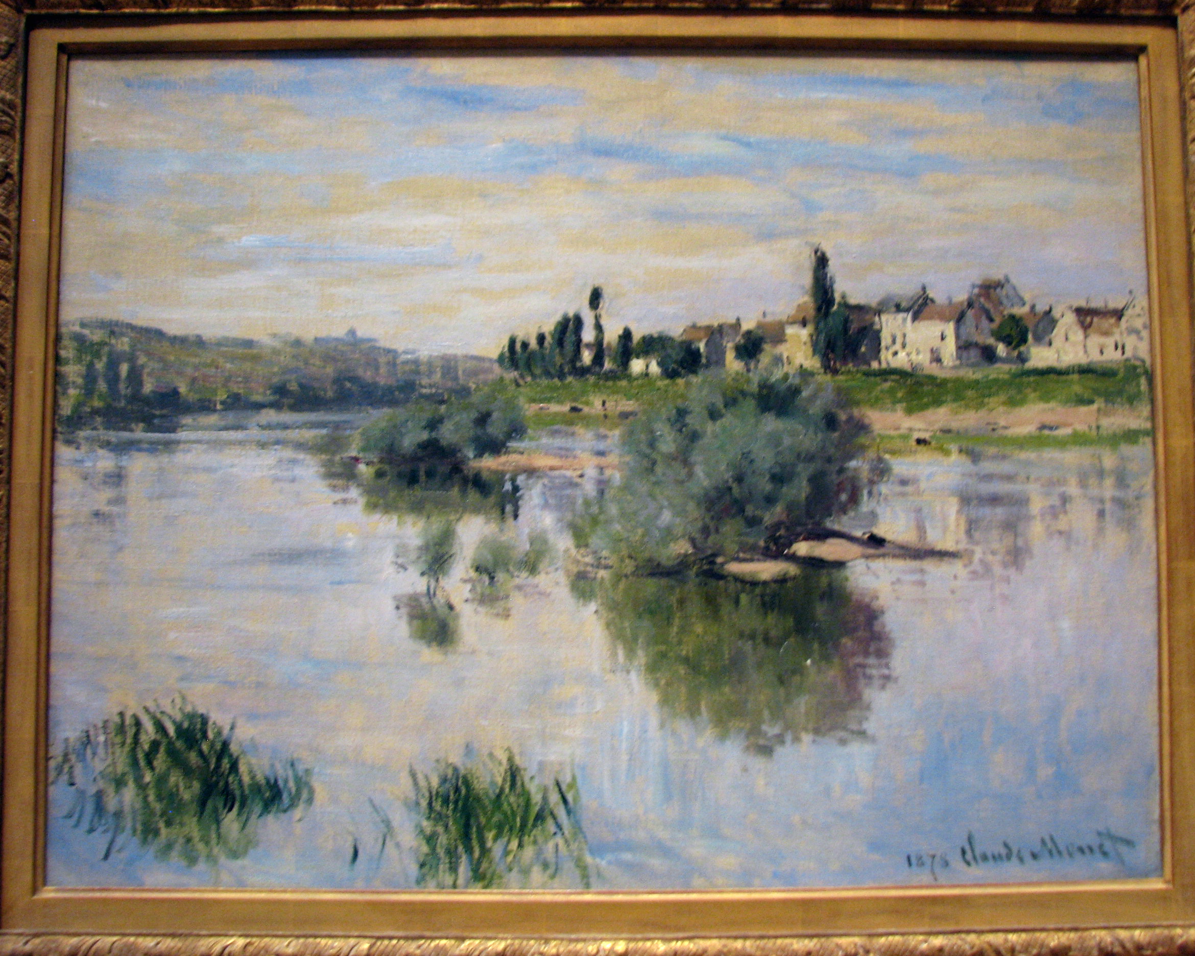 "In a deliberate attempt to reach a larger public and market, Monet submitted the traditionally formulated Seine at Lavacourt to the 1880 Salon. It was accepted, but the canvas was poorly hung and never attracted much attention except from writer Emil Zola, the vocal advocate of impressionism, who described it as "an exquisite note of light and open air." In the same year, Monet submitted another, more audacious scene, which was refused. He would never again offer a painting to the Salon. In 1938, this painting was the first important European painting acquired by the Dallas Museum of Art." (Info from "Artbabble.org" There's a video which also gives an idea of its size.)