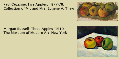 "Cézanne met Hortense Fiquet, a former artist's model, about 1869, but they did not marry until 1886. By that date, their son, Paul, was fourteen. According to him, this portrait was painted in 1891 in the conservatory of Jas de Bouffan, the Cézanne family estate, near Aix-en-Provence. Of the more than two dozen paintings for which Hortense posed, this unfinished canvas offers compelling insight into Cezanne's working method."(From the info card): In the 1870s, Cézanne's paintings are Impressionist, having learned much from his colleague Pissarro, who encouraged him to paint more from observation than imagination. But then Cézanne's art evolved into something quite different. Émile Henri Bernard, a Post-Impressionist painter, who was a friend of Cézanne, made the "assertion [...] that the artist transcends impressionism and, 'far from being spontaneous, [is indeed] reflective.'" (Cézanne and the End of Impressionism, by Richard Shiff, page 127) Even though Cézanne's painting above has large patches of color and even spots where the canvas is bare, one senses an analytical process underlying the results. Maurice Merleau-Ponty, a French phenomenological philosopher, explains, "If the painter is to express the world, the arrangement of his colors must bear within this indivisible whole, or else his painting will only hint at things and will not give them in the imperious unity, the presence, insurpassable plenitude which is for us the definition of the real. This is why each brushstroke must satisfy an infinite number of conditions. Cézanne sometimes pondered hours at a time before putting down a certain stroke, for, as Bernard said, each stroke must 'contain the air, the light, the object, the composition, the character, the outline, and the style.'" (Cezanne's Doubt, an essay found online) Despite the doubt, Cézanne's process of abstraction proved very influential to future artists. Matisse called Cézanne "the father of us all". I'll let Matisse express his feelings: "If you only knew the moral strength, the encouragement that his remarkable example gave me all my life! In moments of doubt, when I was still searching for myself, frightened sometimes by my discoveries, I thought, 'If Cézanne is right, I am right.' Because I knew that Cézanne had made no mistake. There are, you see, constructional laws in the work of Cézanne which are useful to a young painter. He had, among his great virtues, the merit of wanting the tones to be forces in a painting, giving the highest mission to his painting. "We shouldn't be surprised that Cézanne hesitated so long and so constantly. For my part, each time I stand before my canvas, it seems that I am painting for the first time." (Interview with Jacques Guenne, in Matisse on Art, edited by Jack D. Flam, page 80) An exhibit at the Phoenix Art Museum showed the extent of Cézanne's influence on many different artists. We can see in Gauguin's capture of the the Cézanne still life his famous apples, which Cézanne preferred to paint over flowers, because they did not wilt as quickly as flowers. Variations of his fruit showed up in many different artist's pieces.