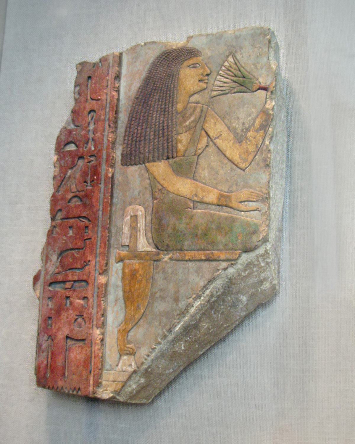 Relief Showing a Seated Woman Smelling the Blossom of a Water Lily