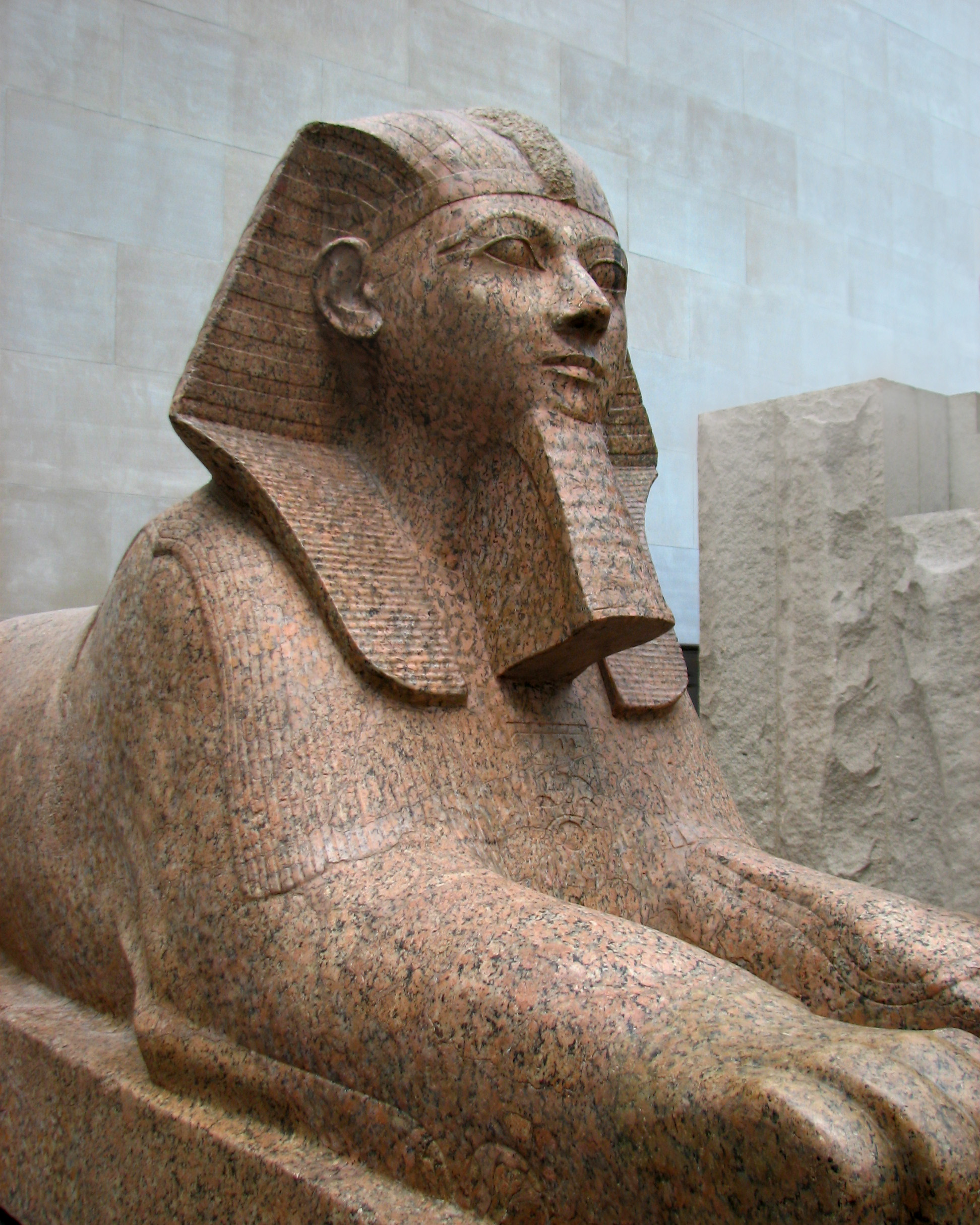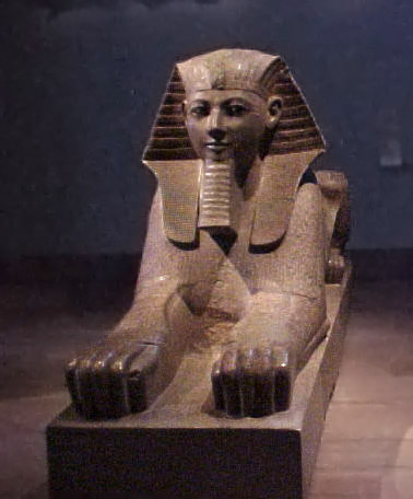 Early Dynasty 18; joint reign of Hatshepsut and Thutmose III (1479–1458 B.C.) Granite; H. 64 5/8 in. (164 cm), W. 35 3/8 in. (90 cm), D. 11 ft. 3 in. (343 cm) The Metropolitan Museum of Art, New York Rogers Fund, 1931 (31.3.166) According to the Museum website, this sphinx weighs more than SEVEN TONS!
