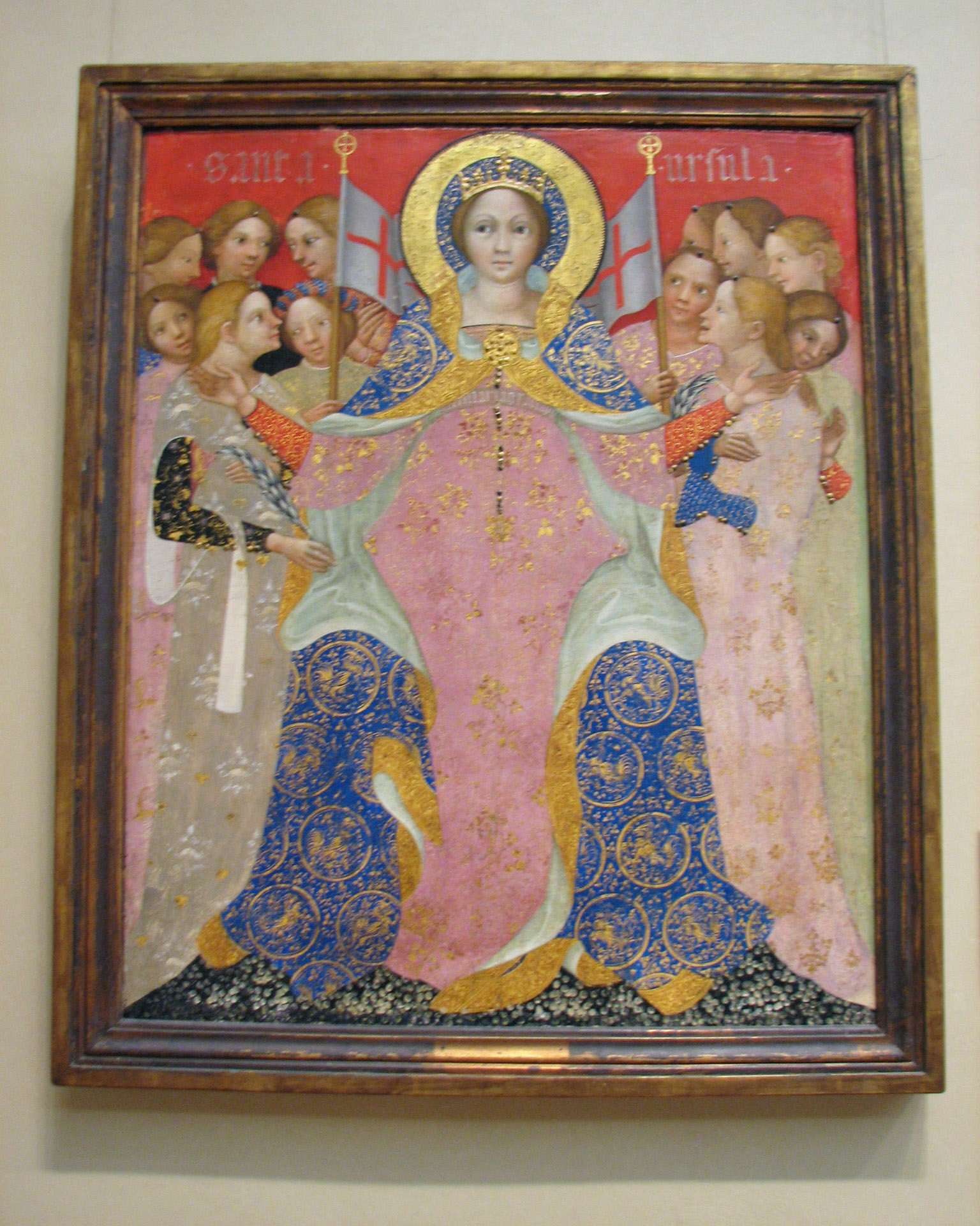 Inscribed: (background) ·santa· ·ursula·; (on saint's belt) [ave]mariagratiapl[ena]
