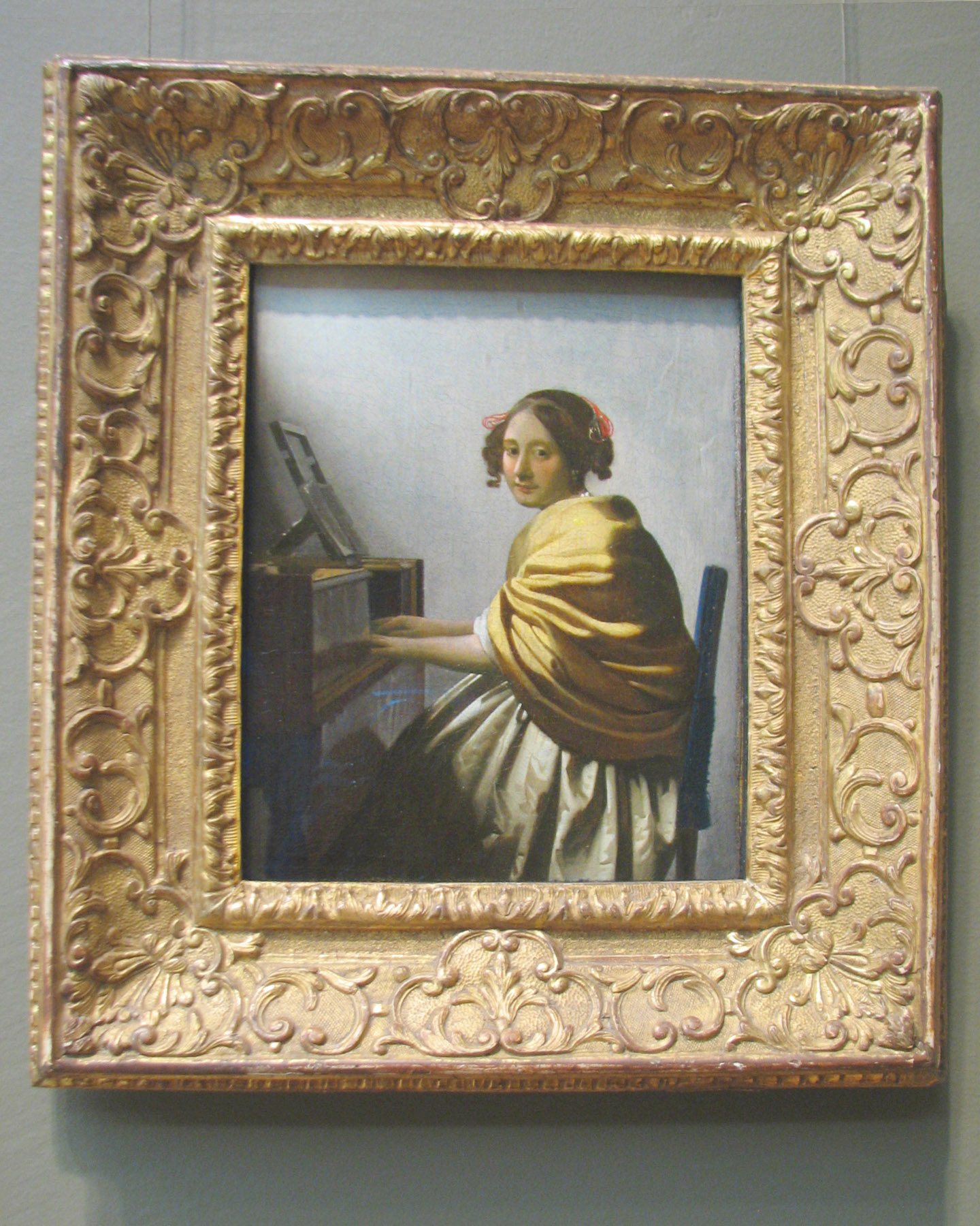 "Until recently this late work by Vermeer was little known, even to specialists. Technical examination and passages of painting very similar to those in Vermeer's picture of the same title in The National Gallery, London, support the Delft artist's authorship. However, another hand may have painted the yellow shawl, under which are traces of less voluminous attire."