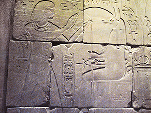 From the far right of the above scene, we can the hieroglyphs that make up Sobekmose's name.