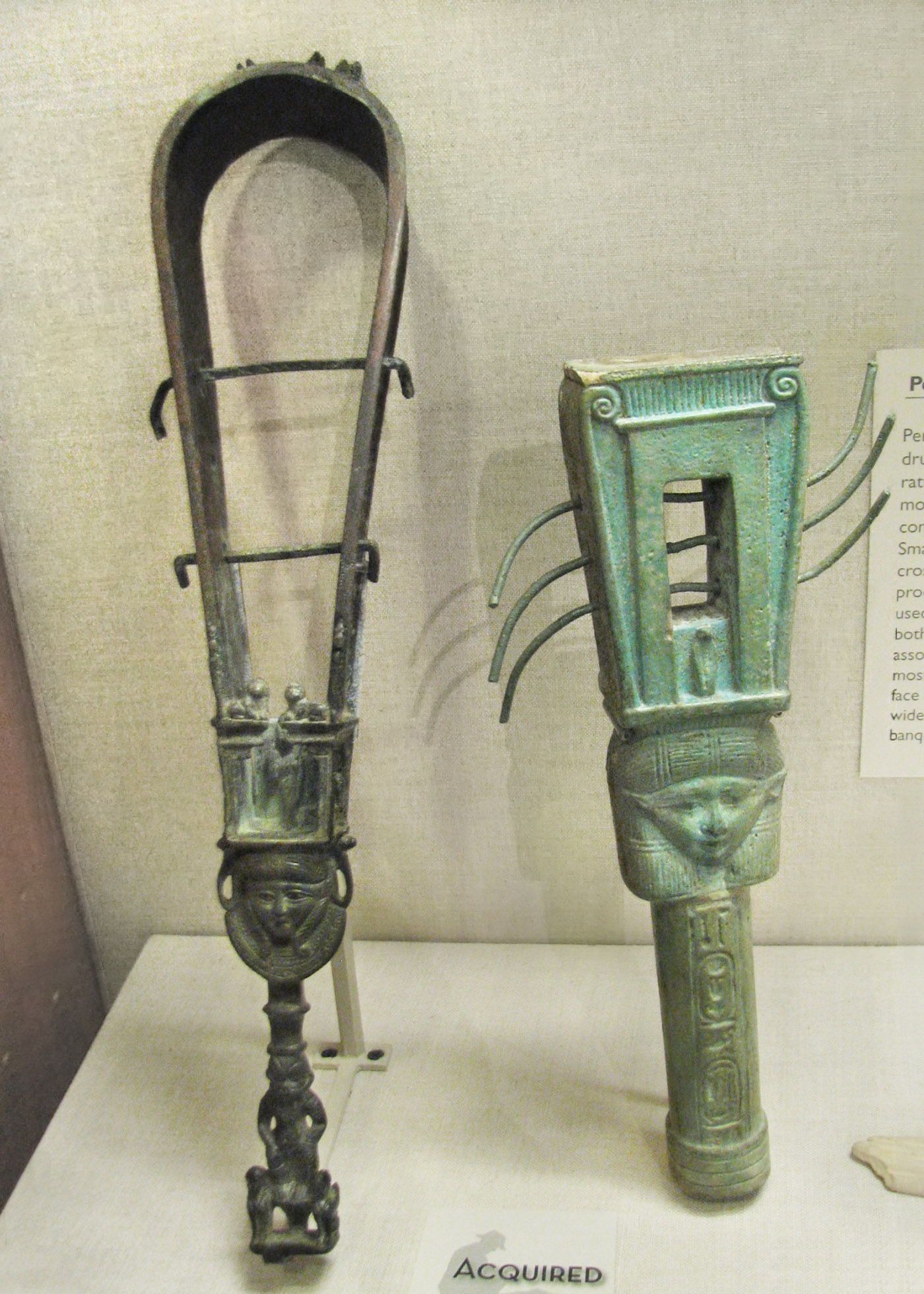 A 'snippet' quote via Google book looks: "Based on this proven effect of the instrument, the sistrum was, from the New Kingdom on, the instrument that pacified