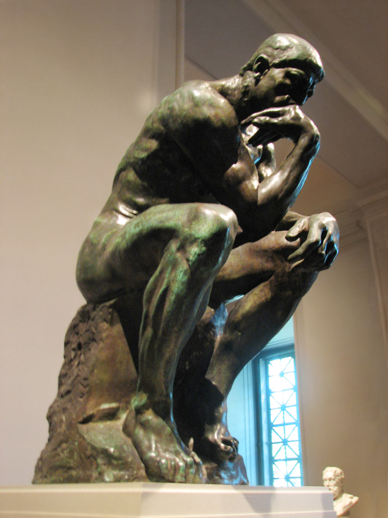 ![]() The Thinker (Le Penseur), model 1880, cast 1901 Auguste Rodin (French, 1840 - 1917) Bronze, 28 1/8 x 14 5/16 x 23 7/16 in. (71.5 x 36.4 x 59.5 cm) Gift of Mrs. John W. Simpson, National Gallery of Art, DC, #NGA 1942.5.12 Photo by Joan Ann Lansberry, ©2007 "As Rodin himself described: "What makes my Thinker think is that he thinks not only with his brain, with his knitted brow, his distended nostrils and compressed lips, but with every muscle of his arms, back, and legs, with his clenched fist and gripping toes." "Rodin's Thinker exists today in many casts and sizes. More than fifty are known in this size—which is the size of Rodin's original handmade clay model." (From museum website.) |