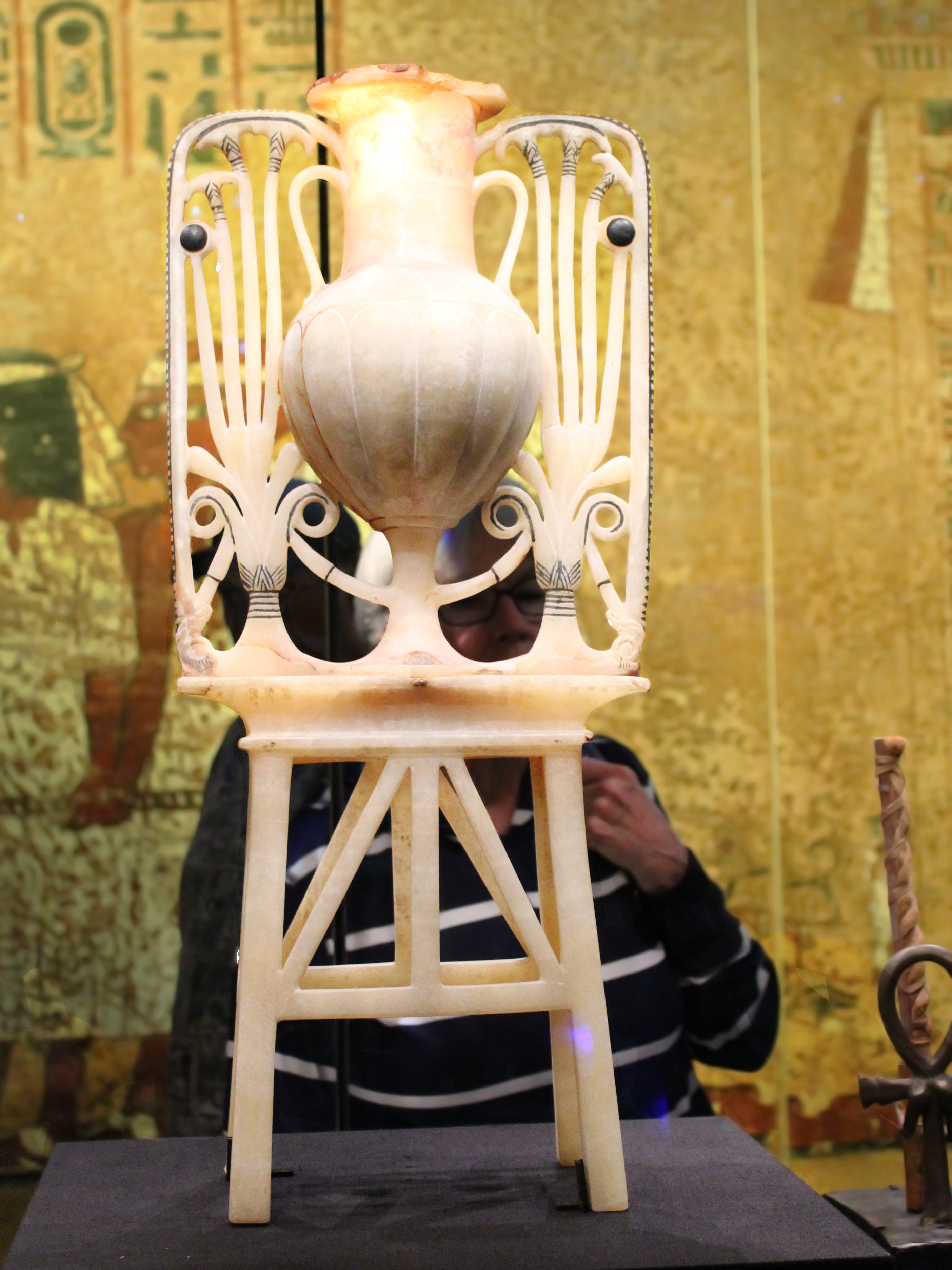 "A brown residue from a perfumed oil was found inside this Egyptian alabaster vase. Oils, essential for rituals, were highly valued."