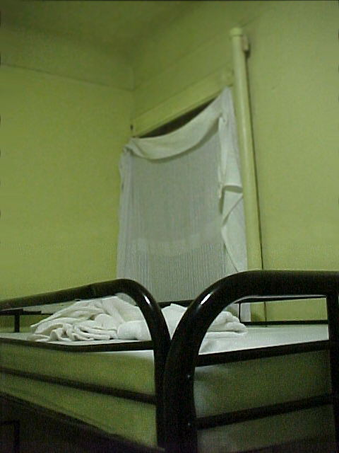 I'm so glad I had read the "Trip Advisor" site, or the shock might have been too much. I expected a public toilet, but did not expect the lack of phone in the room, no elevator, and lack of general cleanliness in some areas. The four flights of rickety stairs are very steep, especially hauling heavy suit cases. There is just a bunk bed set, a sink, one folding chair, and a bare ringed overhead light that turns on with a pull string. I'd thought myself silly to bring one small stainless steel cup and some soap. I was not silly.