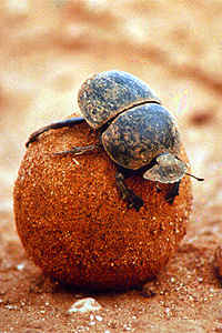 Was the fossilized scarab like the ones in Ancient Egypt? There are over 20,000 species in the family Scarabaeidae, so it's at least a distant relative. Dung Beetles occur on all continents except Antarctica, for they don't like cold weather.