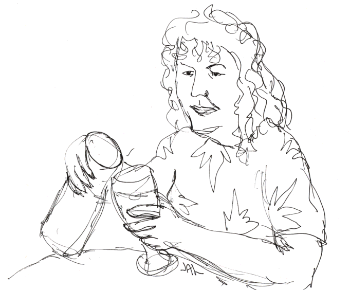 ![]() This was quickly sketched from a photo of Julia pouring tea at the Phoenix Art Museum café.
