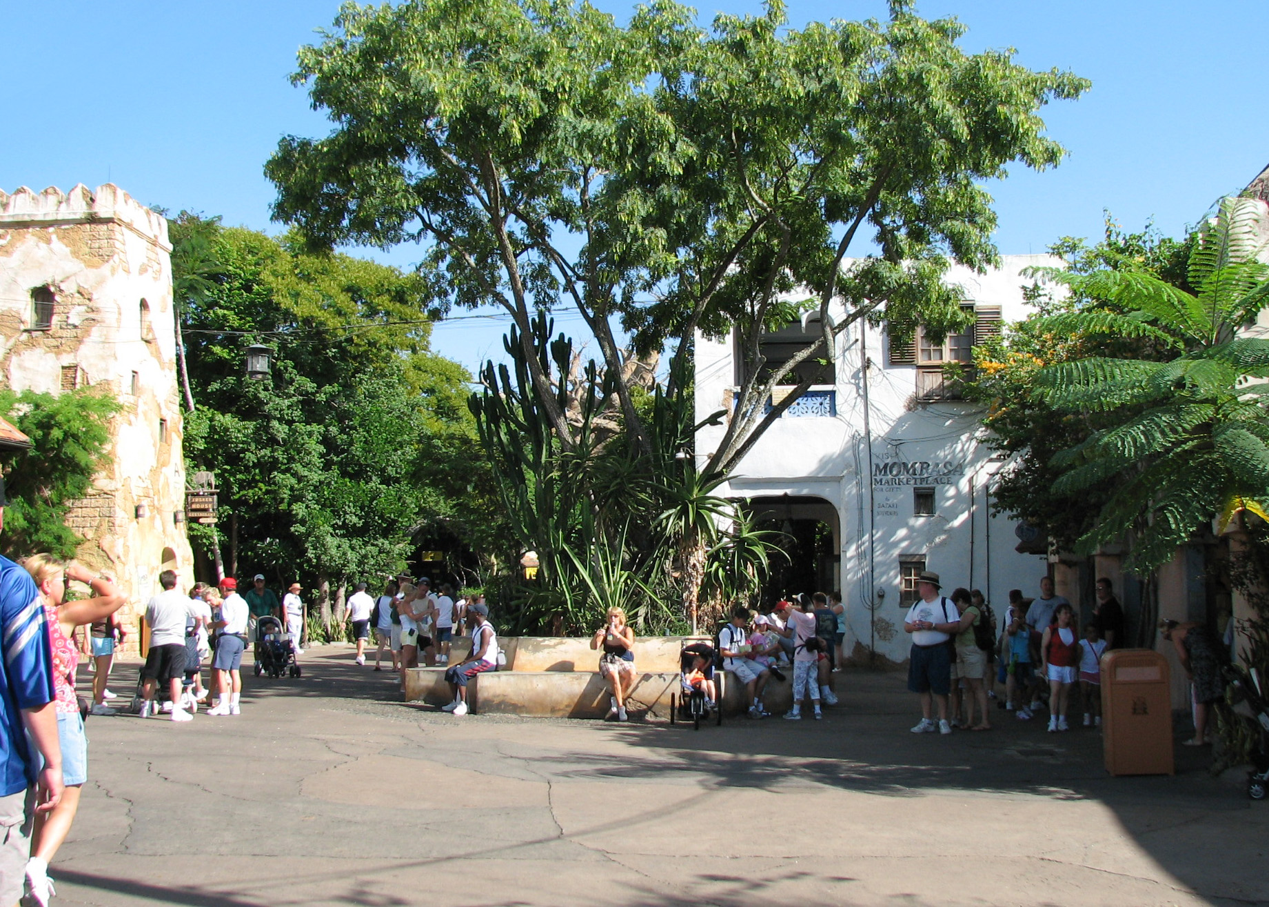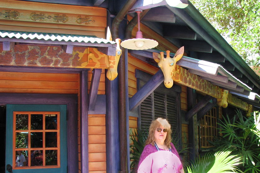 That charming place with the umbrellas and chairs might have been an eatery. We didn't explore further. But we did eat at the Rainforest Cafe which is at the very entrance of the Animal Kingdom. We had delicious portobello mushroom burgers. Just thinking about them makes me crave one now. Curiously enough, it wasn't the first time we ate at a Rainforest Cafe, as there's one in the Arizona Mills mall at Ahwahtukee. This one was a little bigger, and featured huge columns that were gigantic fish aquariums: