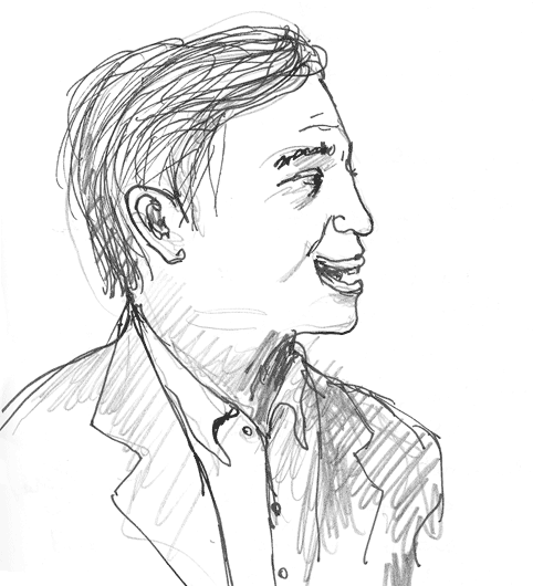While listening to Isaacson speak, I took the chance to draw his feature...