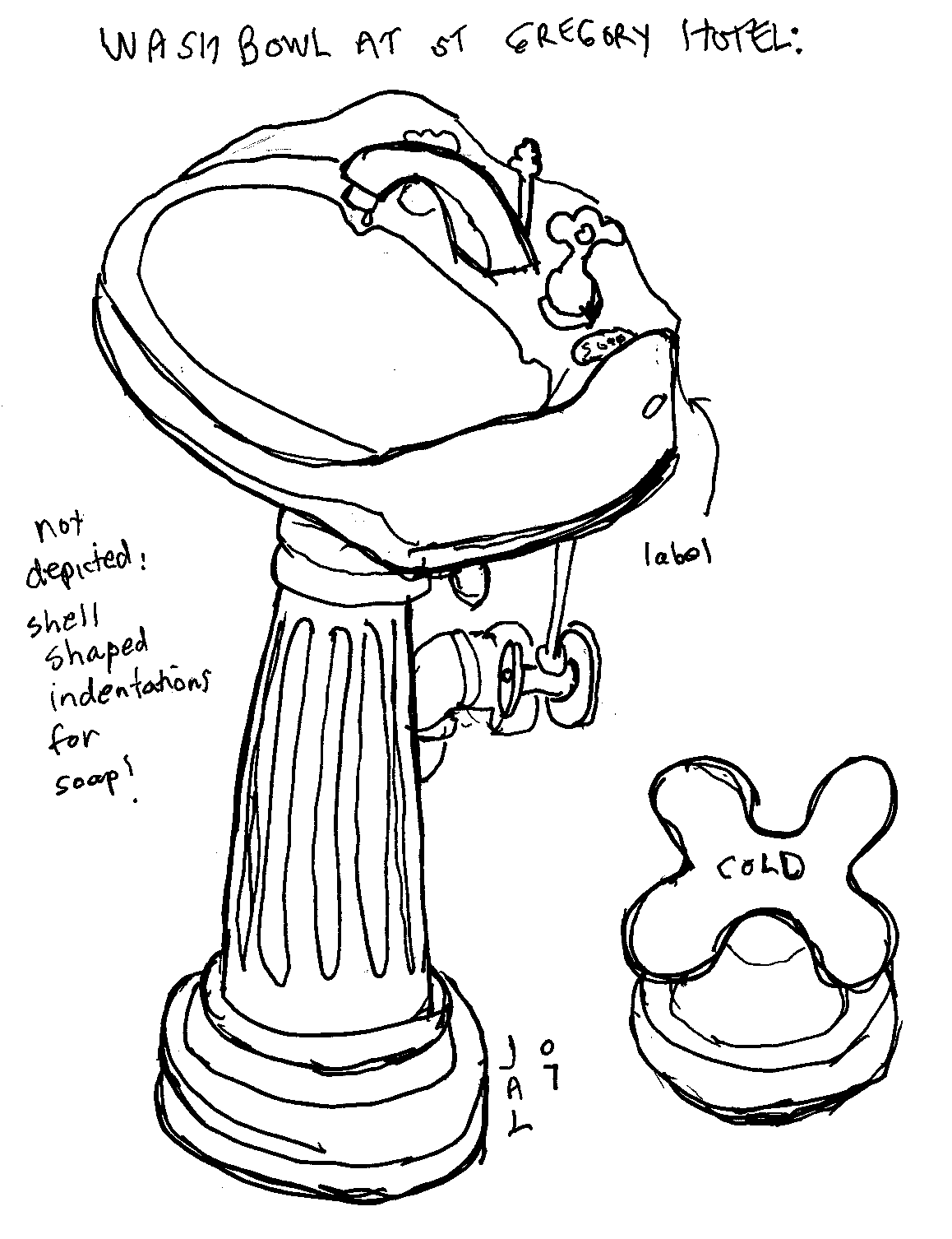 Sitting on 'the pot', I observe the wash bowl, thinking it's quite elegant: