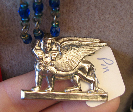 Here is an Egyptomania pin, a griffin wearing the Nemes headdress. I did not buy this one!