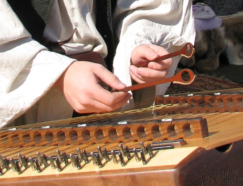 Then she turns the crank so the huge weight goes up, and then it goes down, creating the piece.
