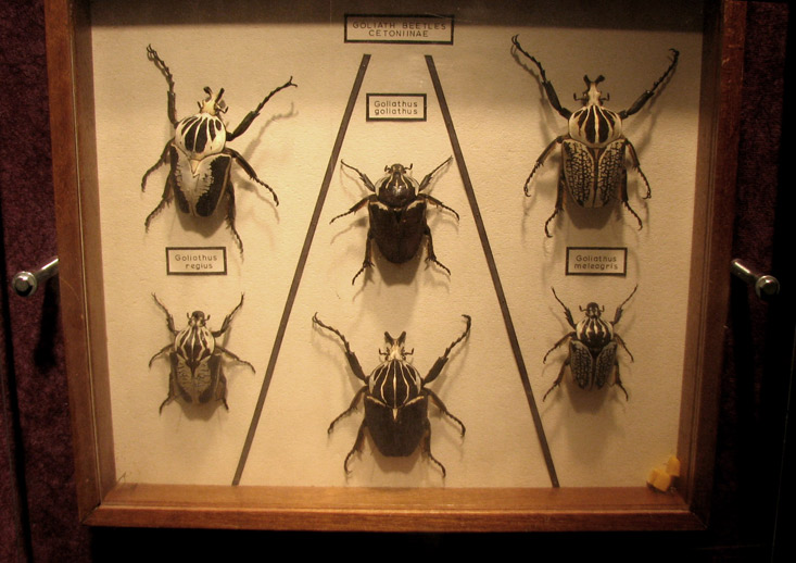 An entire wall was devoted to scarab (aka 'beetle') displays. These are 'GOLIATH BEETLES'