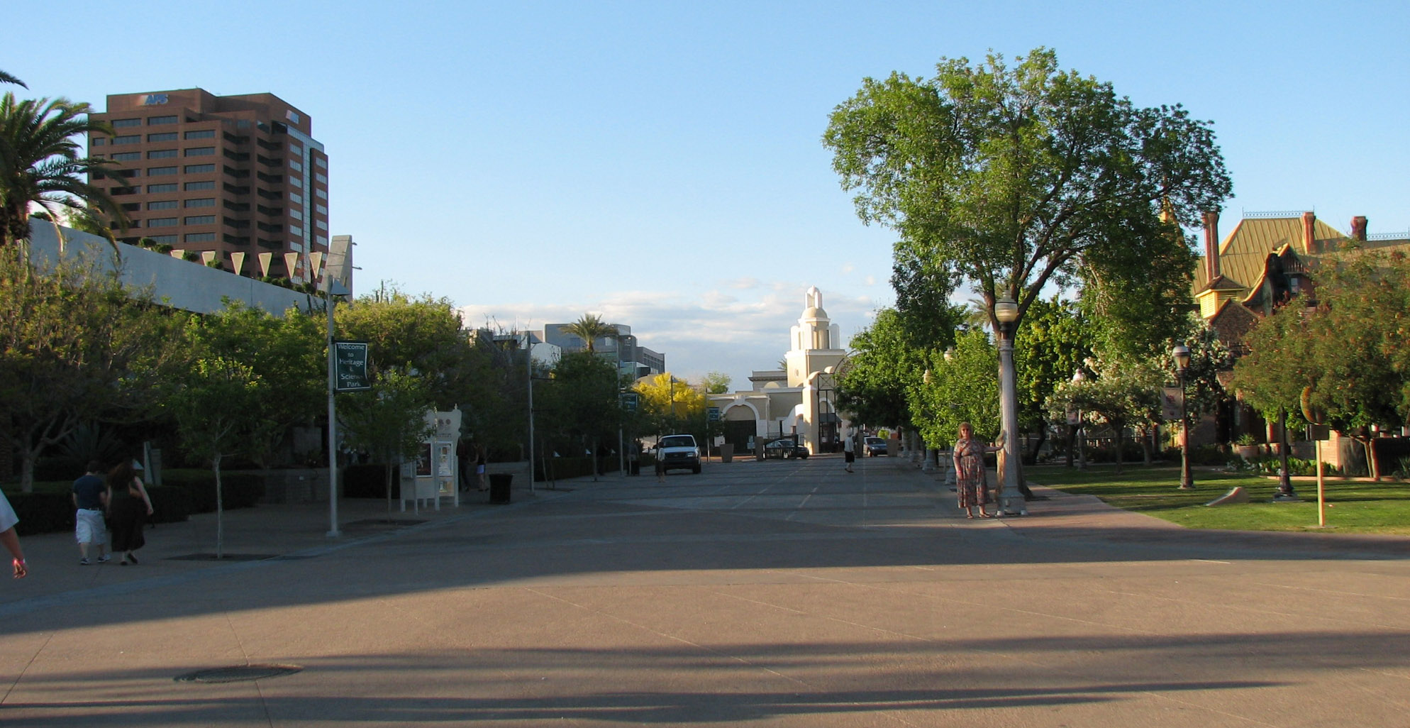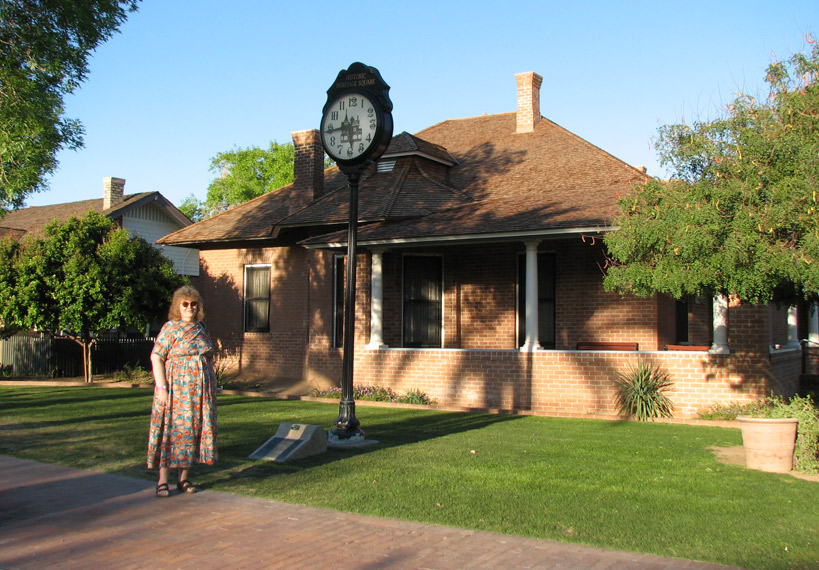I am very glad to have seen the show. Exiting the show, we entered the cool early evening air. I took a photo of Julia near one of the buildings at the Historic Heritage Square: |