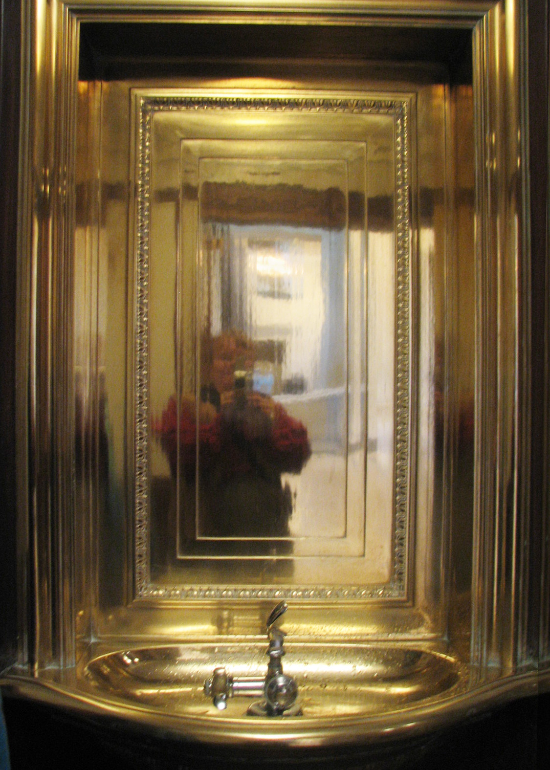 I've been very busy, going through those 800+ photos, trying to pick what best shows off each place visited and typing out those handwritten entries. Today, I'm taking a break. I'm still enjoying those photos, but am selecting some which have that unique quality of reflectiveness. I like the mirror effect for its abstract qualities. In these photos, Julia and I really appear enmeshed within our environment.
