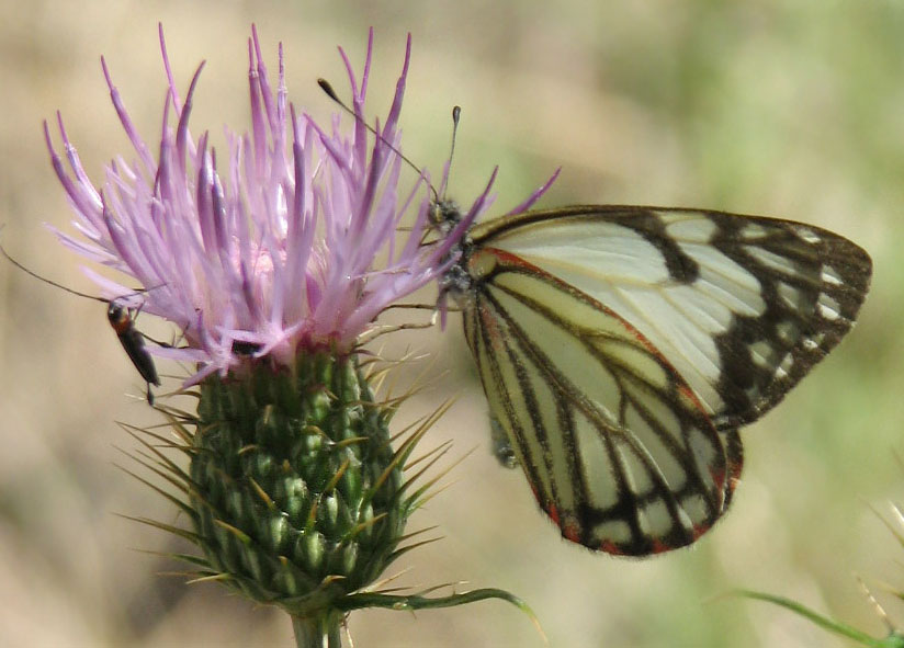 | I caught a butterfly nipping at a thistle. Our notice did not dissuade his thirst: |