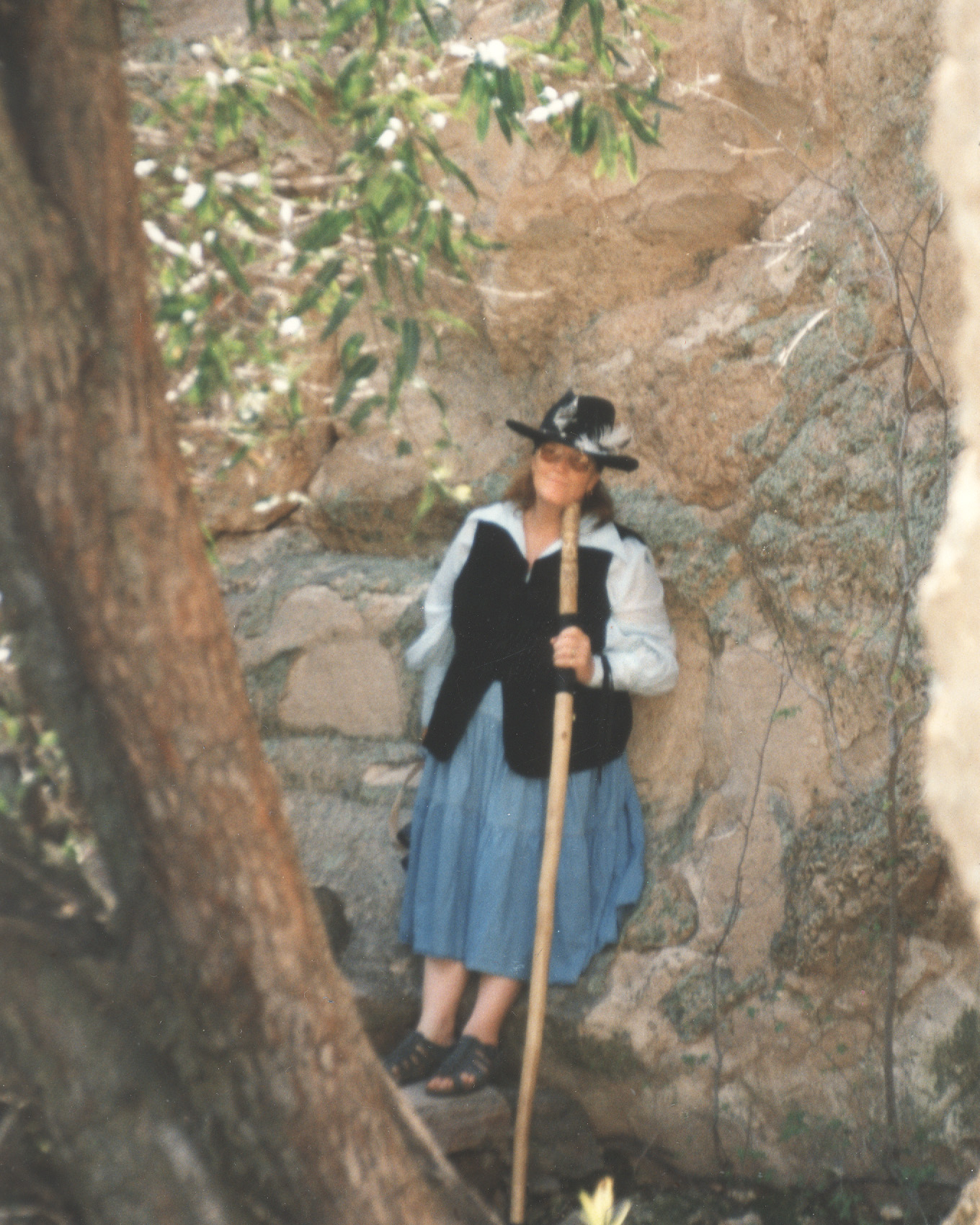 I didn't find it in my drawer of photos. But I did find a few other interesting photos. The first one I pulled out was taken in 1997, first making its appearance in my journal twelve years ago. I scanned that one again, and found another from that day, a visit Laura, Julia and I had taken to Tuzigoot, Arizona: |