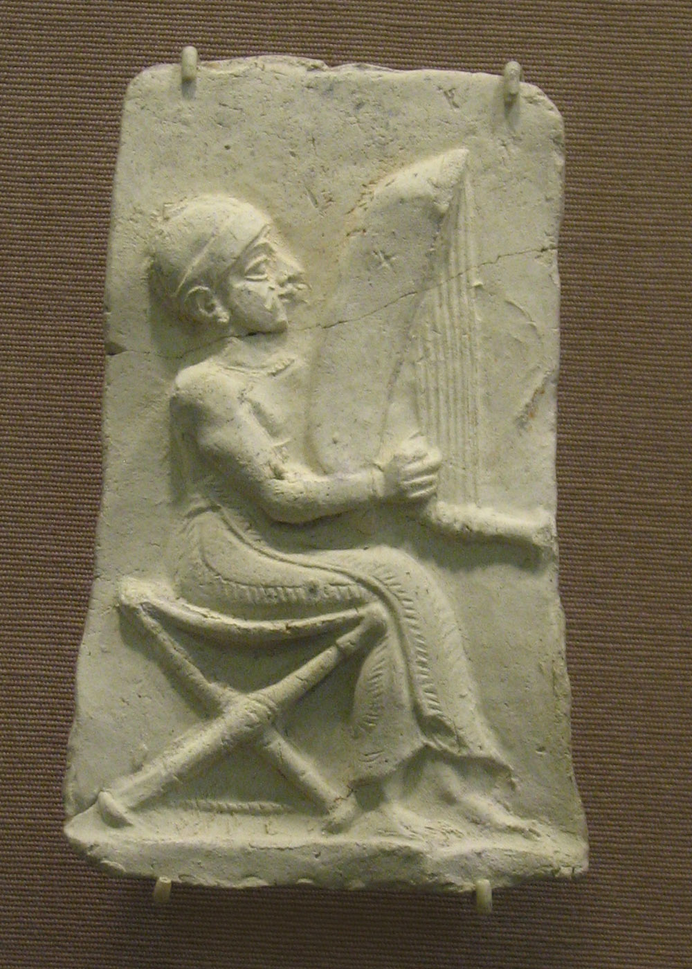 ![]() Plaque with Mesopotamian Harpist Iraq: Ishchali?, Isin-Larsa /Old Babylonian Period, ca. 2000-1600 BCE Baked clay, 12.3cm H, 7.7 cm W Purchased in Baghdad, 1930, OIM A9345 |