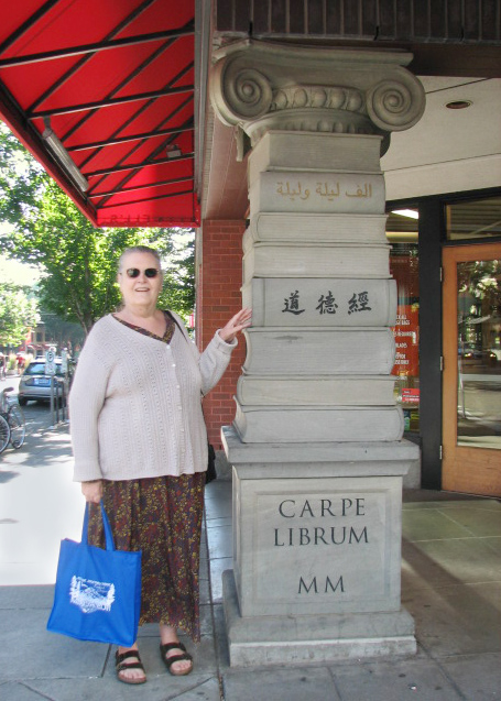 Upon entry, we found its vastness has been organized into color coded areas. Archaelogy and history are in the Purple area, as well as the restrooms. Of course I made a bee-line for the Egyptian section! I didn't want to get more than I could carry on the mile walk back, so I settled on four books: a fun book _The Cat in Ancient Egypt_, by Jaromir Malek; _In the Shadow of the Pyramids_, also by Malek, along with W. Forman; _Egyptian Painting and Relief_, a thin book by Gay Robins; and _Egyptian Museum and Papyrus Collection, Berlin: 100 Masterpieces_, by several authors. The Neues Museum was recently re-opened after several decades since war-caused ruin, and this book celebrates many pieces not seen since then. Among them is a better photo of Sahure's relief featuring Set and another god. I will scan this one when I get a chance. Julia felt woozy, so she sat and rested while I gathered books. We got drinks at the café within Powell's, an iced chai for me and some hot tea for Julia. I didn't need the tasty raspberry muffin, but I ate it anyway. Walking back to our room, we spied the chocolate shop! Julia got hot chocolate, "the best she's ever had", and I got pomegranate tea which went very well with the three pieces of dark chocolate truffle. Exquisite! "Moonstruck", is their brand name, should you ever have reason to go there. This evening we hope to find the "Pastini Pastaria", a restaurant whose sign we can see from the eleventh story windows by the elevators, but haven't yet located on foot.