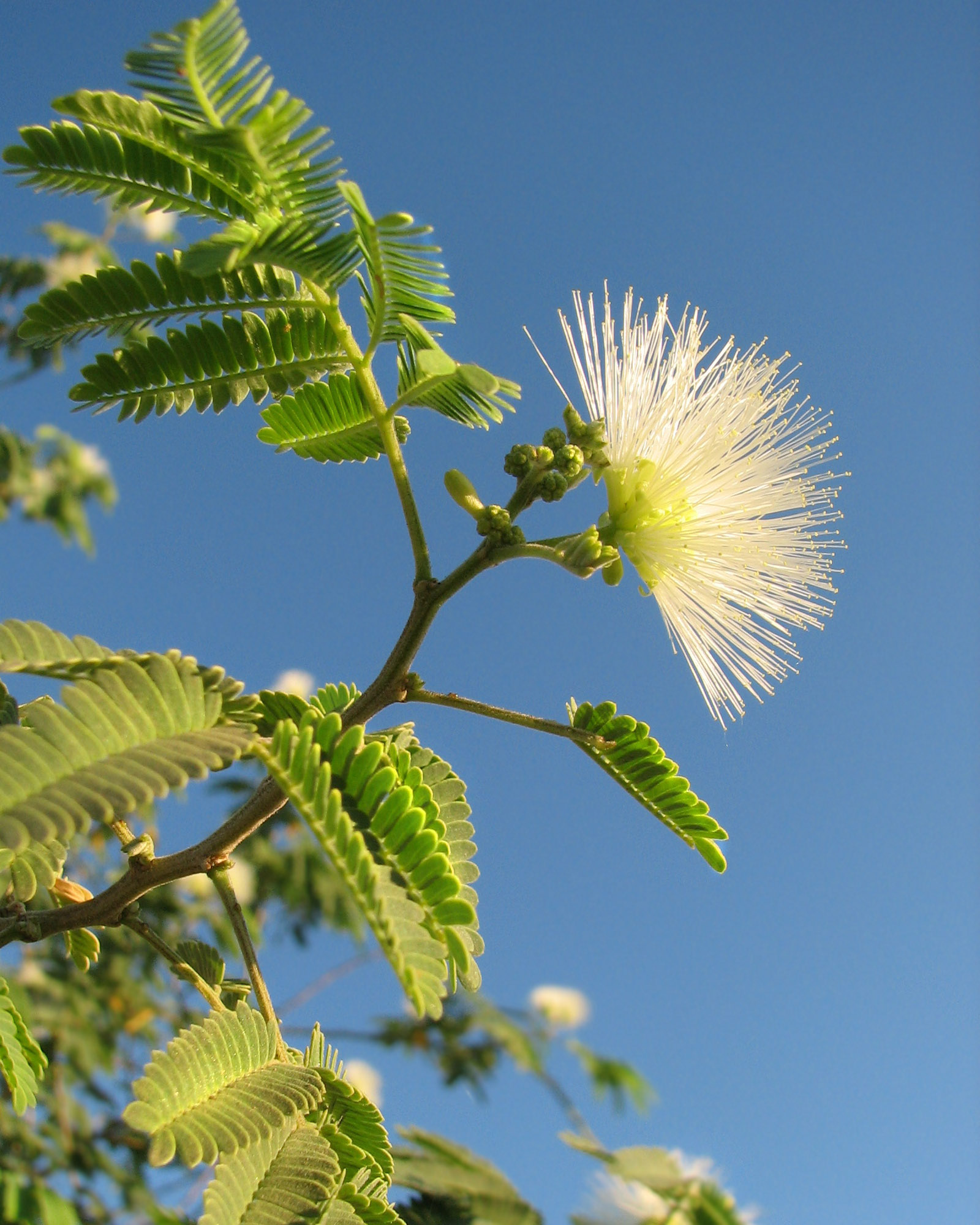White mesquite bloom against the blue sky...