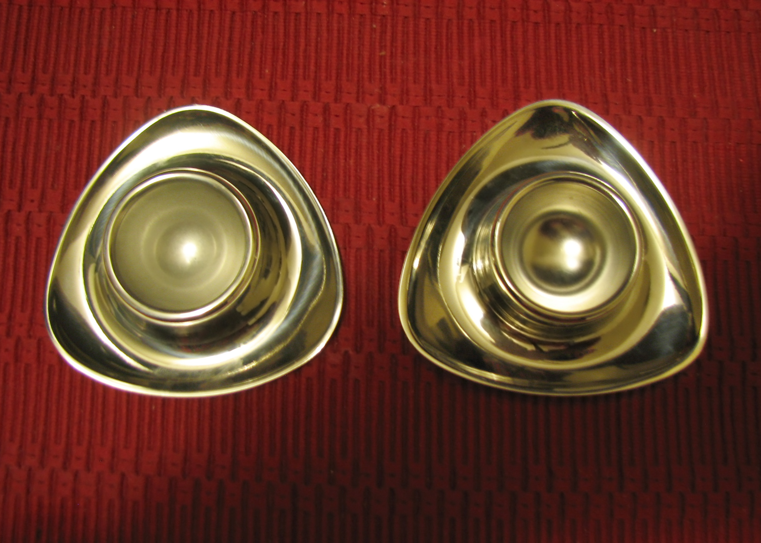 Both of these were finds at Ebay. I got a pair of the Alessi ones first. Then I spied the pair of WMF ones later. The seller called the German made ones "vintage". Merriam-Webster gives as definition "a period of origin or manufacture." Well, that could be any era. Trying to be more specific, I took to Wikipedia. While they don't list 'collectables', they