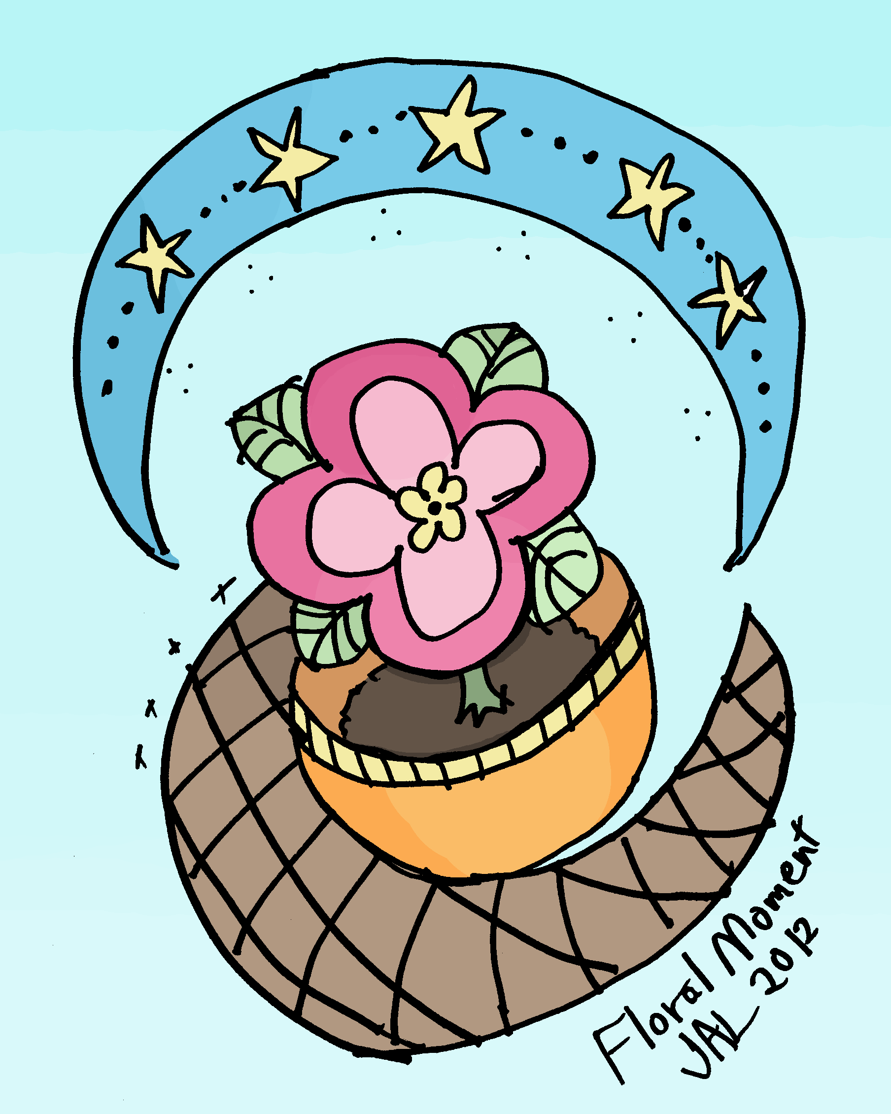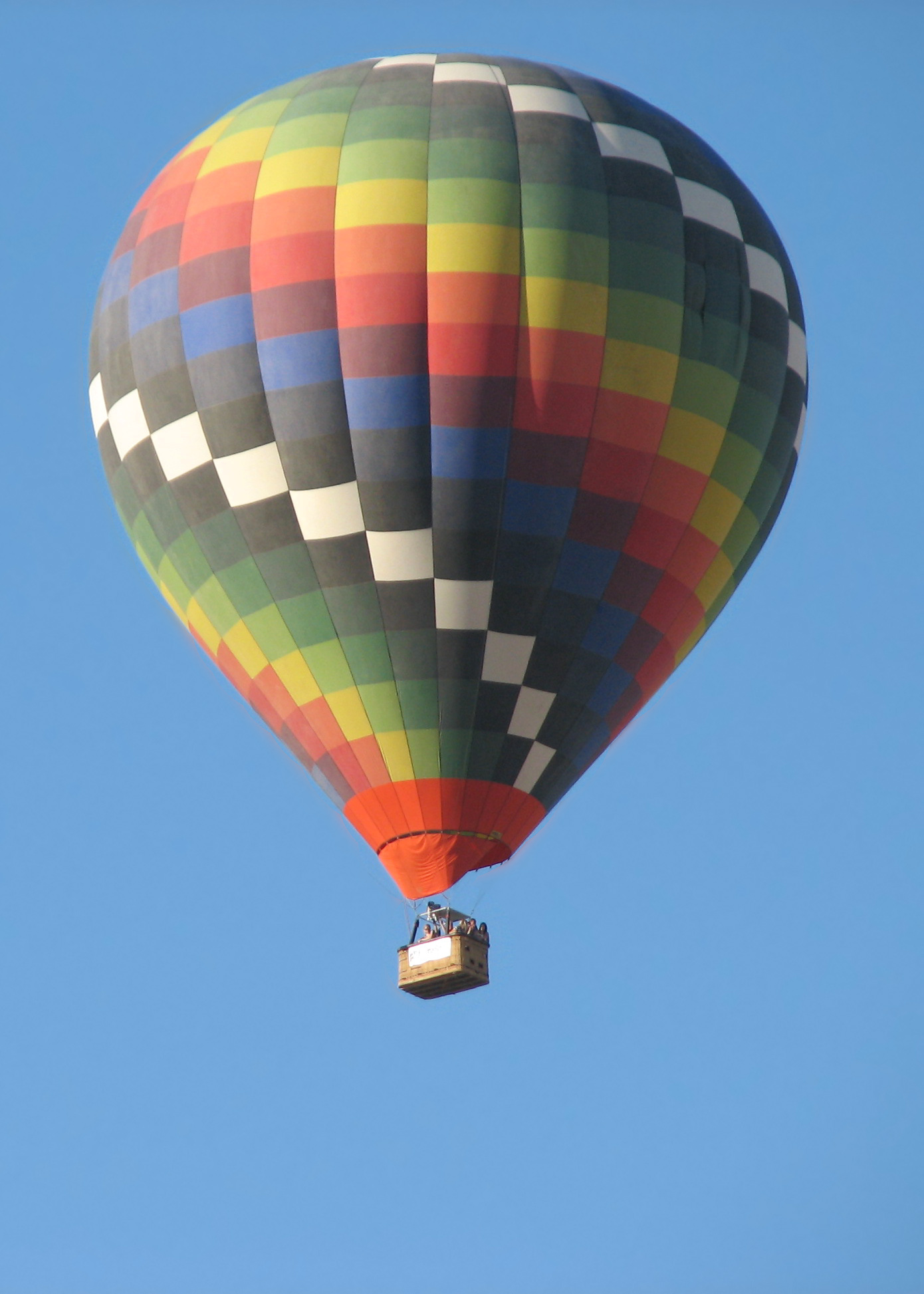 The weekend has been a hot one. It got up to 104F (40C) yesterday. I feel sorry for all the artists who baked at yesterday's Art Beat in Old Town. We went around ten o'clock, and it was already pretty steamy by then. I saw some very nice art there, and especially liked the mosaics. After lunch at Asian Star, (my usual shrimp and broccoli), I made some slow progress on my writing project. Then in the afternoon, we saw a movie about Georgia O'Keefe. I wondered why it never made it to the theater, then learned it was done for 'Lifetime' TV. It really merited the big screen, as all the actors did admirely to portray her life. This morning, I needed to clear my head, so I suggested we get out early, 6:00am early, to the park for a walk. I'd seen the jacaranda blooms yesterday around noon, and hoped to get a good photo with them. But the afternoon heat was too much for them, and the trees have already lost some of their blooms. After we finished our walk, I saw a hot air balloon above us. It was too far away to get a good photo, though. I was happy, though. We'd had a good walk, and both of us felt much better. I had a small surprise when we got home. The balloon had followed us home! |