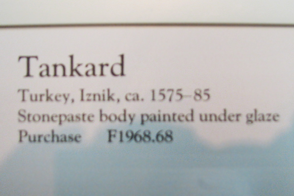 | The following tankard at Chicago's Art Institute is very similar to the one at the Freer Gallery. (I suspect the same artist made it.) |